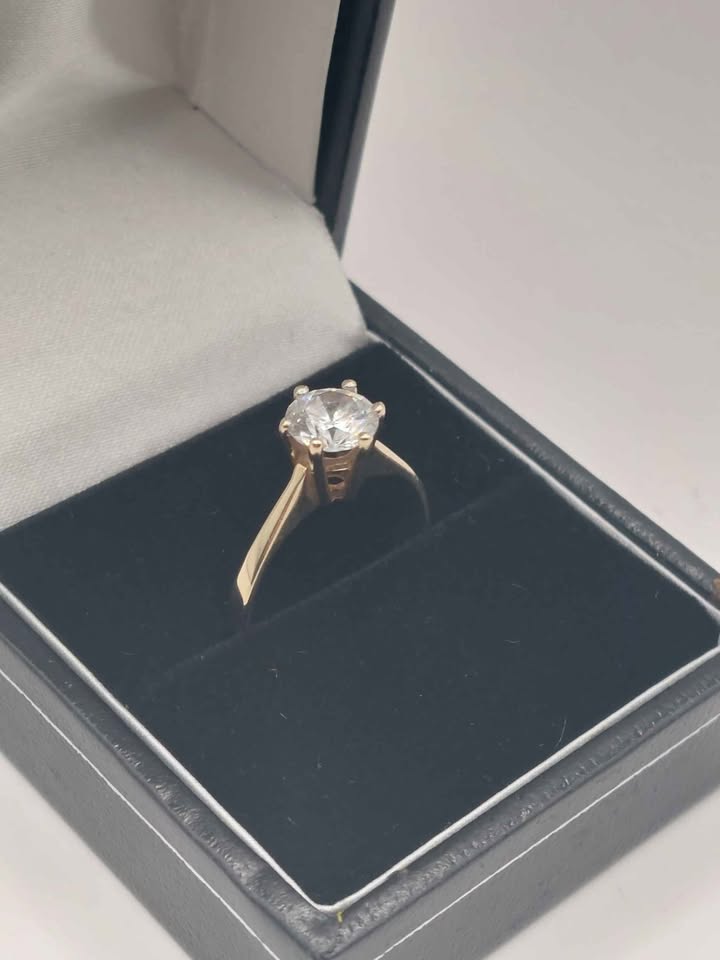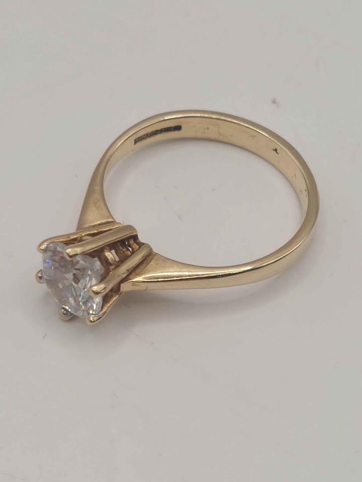 (375 Hallmarked&Tested), 9K 2.5G Gold Ring With Clear Stone, Size L