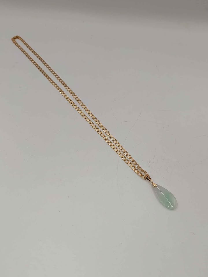 (375 Hallmarked&Tested), 9K 7.63G 18" Gold Chain With Aventurine Crystal Pendant
