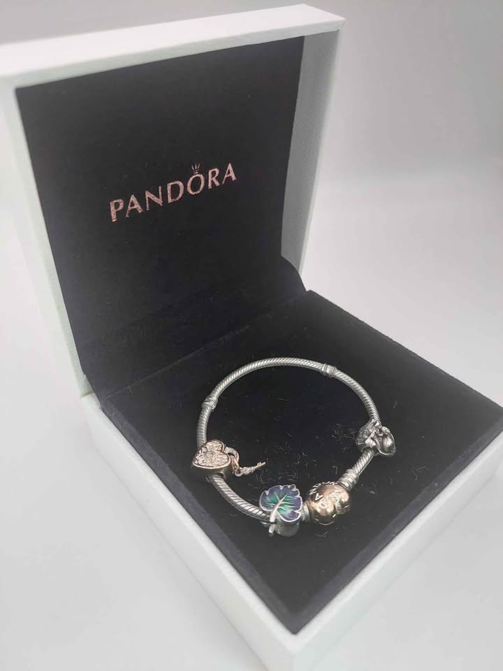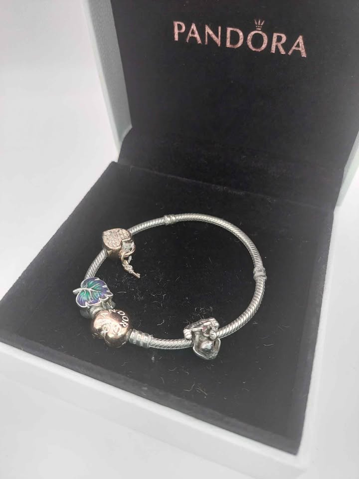 (925 ALE Hallmarked&Tested), Pandora Bracelet With 3 Charms, Boxed