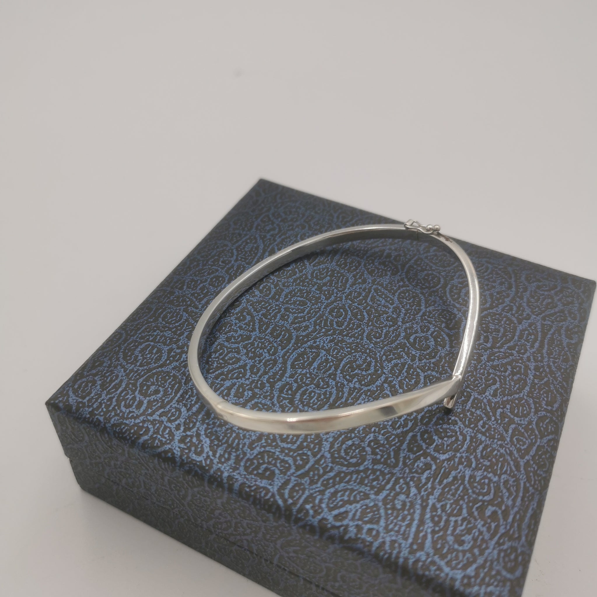 9K White Gold Hallmarked 375 Bangle, 4.9Grams, Box Included, Width: Approx. 2.5 Inches
