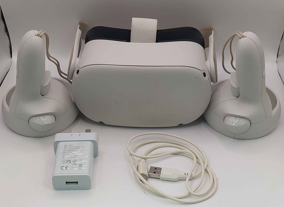 Meta Quest VR 2 Headset With Controllers Boxed White 64GB * slight discolouration ref pic *