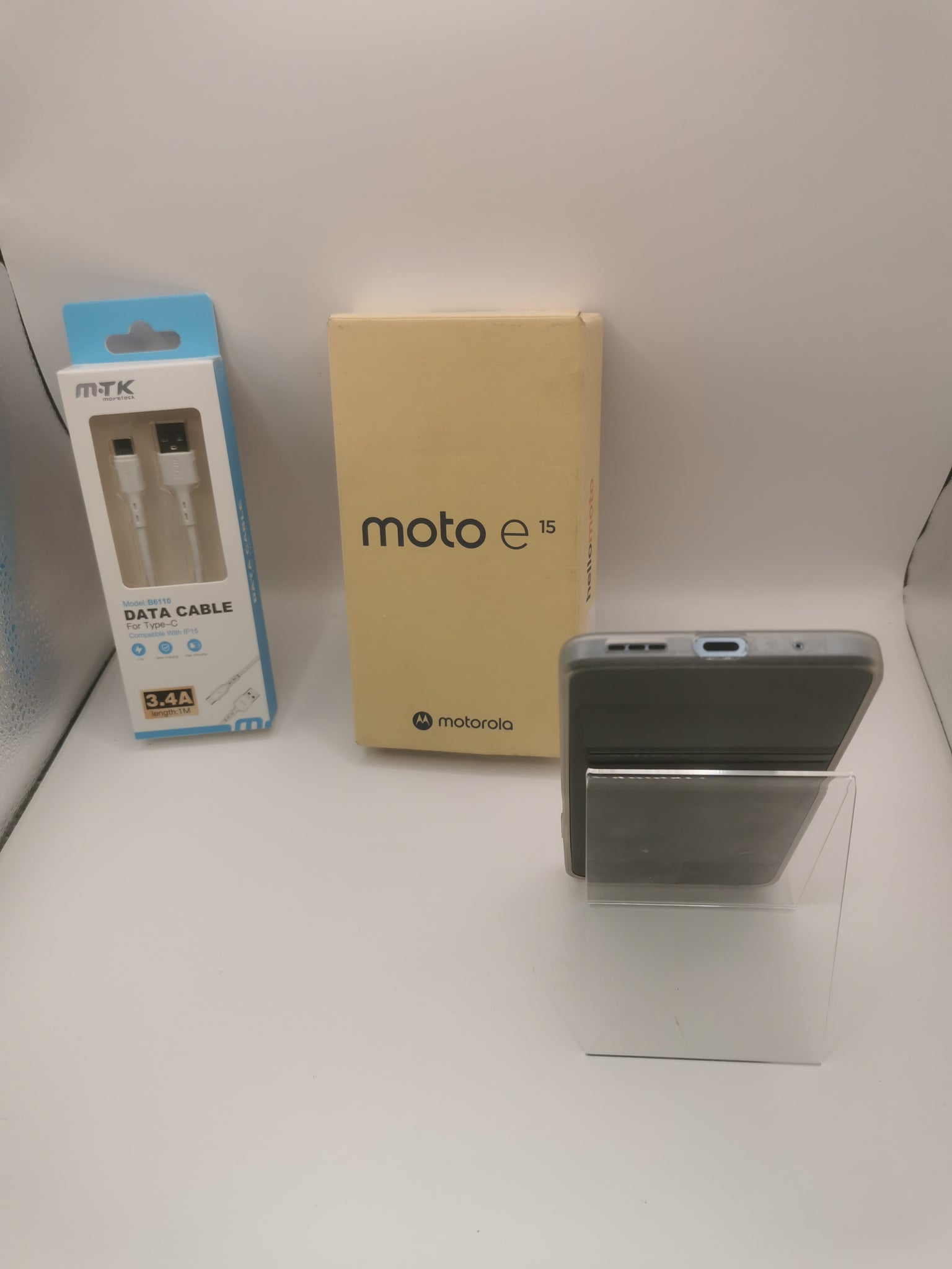 Product Description Immersive entertainment Turn up your content with moto e15. Enjoy everything better on a bright, 6.7 inch display featuring stereo speakers with 7x more powerful bass2. Take good photos with the AI-powered, 32 MP3 camera, and experience smooth performance with a MediaTek Helio G81 Extreme processor —all in a stylish, durable design. Keep the fun going. Brighten your day with moto e15. Bring out brilliance Capture stunning photos in any light with the AI-powered, 32 MP3 camera system and quickly open the camera app thanks to the additional ambient light sensor. Everyday efficiency Seamlessly multitask with the powerful MediaTek Helio G81 Extreme processor and up to 6 GB RAM4. Tackle your to-do list with ease. Technical Details: Network 2G: 3/5/8 3G: 1/5/8 4G: LTE 1/3/5/7/8/20/28/38/40/41 Display 6.67 inches,HD+ (1604 × 720p), LCD 263 PPI pixel density 800 nits (typ), 1000 nits (HBM) brightness Memory 64GB internal memory 6GB RAM MicroSD card support upto 1TB Data Wi-Fi 802.11 a/b/g/n/ac 2.4GHz+5GHz, Wi-Fi hotspot USB Type-C GPS, A-GPS, LTEPP, SUPL, GLONASS, Galileo USB 2.0 Camera Rear (32) MP, Front (8) MP f/2.05 Video recording resolution FHD (30fps) HD (30fps) Photo,Portrait,Pro Mode,HDR,Face Retouch,Selfie Photo Mirror,Snap in Video Recording,QR/ Barcode Scanner Fixed focus, flash Hardware MediaTek Helio G81 Extreme chipset Octa-core (2xA75 2.0 GHz + 6xA55 1.7 GHz) 820 MHz Arm Mali-G52 MC2 GPU General Android OS Nano-SIM + Nano-SIM 3.5mm headset jack Loudspeaker 165.67 x 75.98 x 8.17 mm 188.8 g