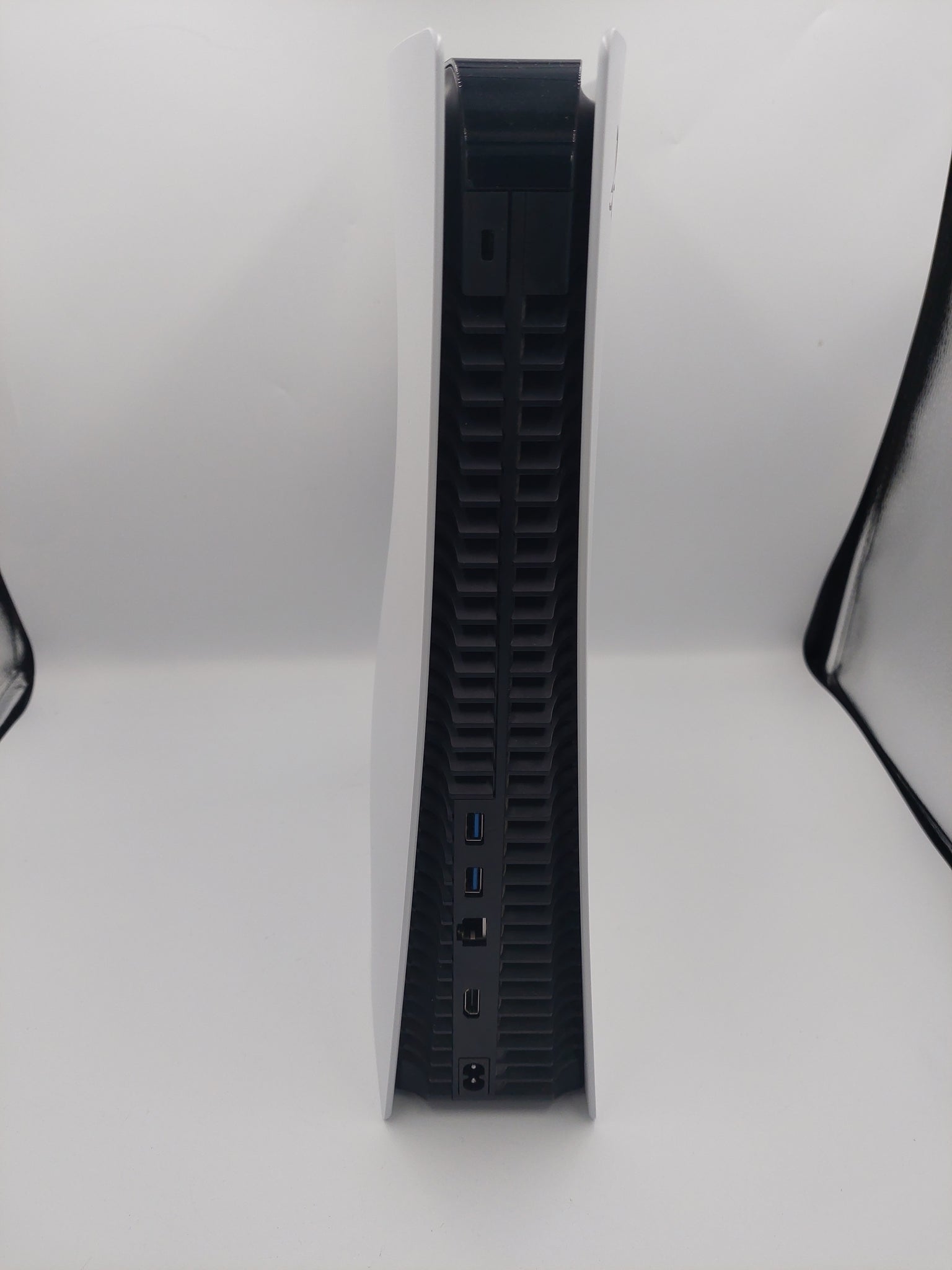 The PlayStation 5 (PS5) 825GB console features a custom SSD for fast loading, 4K gaming support, and advanced features like haptic feedback and adaptive triggers in select games. It comes with an 825GB SSD, but usable storage is about 667GB after the system software is installed.Speed: A custom SSD provides fast loading times and an integrated I/O for a seamless experience. Graphics: Supports 4K resolution and high frame rates up to 120fps for smooth gameplay. Immersion: Experience deeper immersion with haptic feedback and adaptive triggers in select games, and enjoy 3D Audio technology. Compatibility: Can play a back catalog of supported PS4 games. Connectivity: Features Wi-Fi, Ethernet, and Bluetooth.