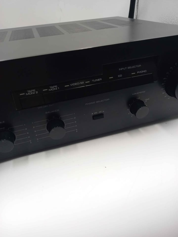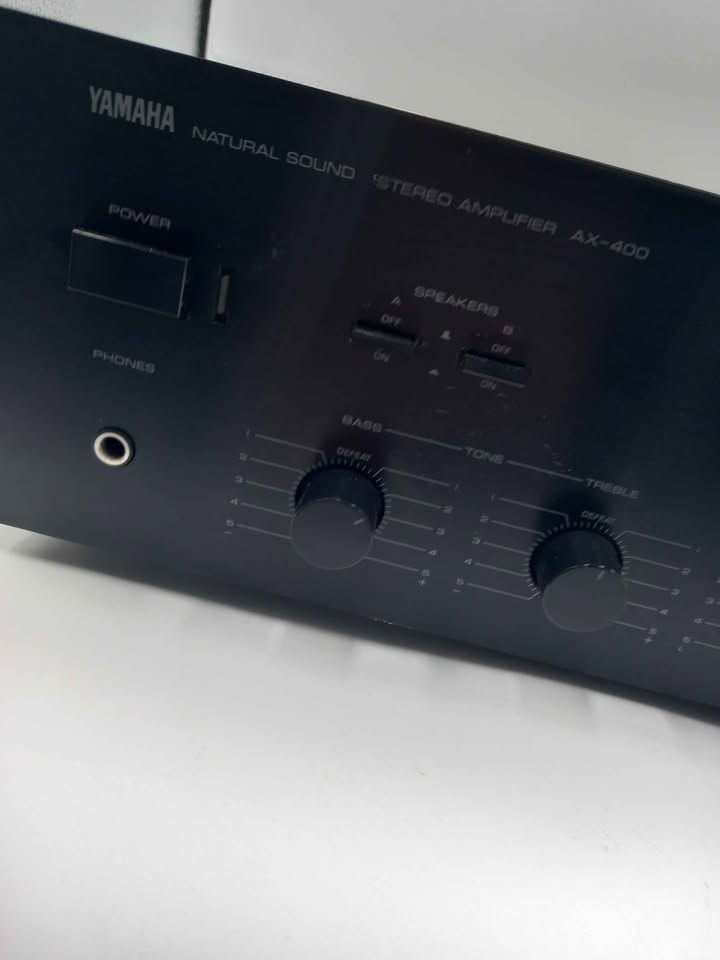 The Yamaha AX-400 is a Natural Sound stereo integrated amplifier produced between 1986 and 1989, delivering 55 watts per channel into 8Ω with 0.015% THD. It is a well-regarded vintage unit known for its robust build, MM/MC phono inputs, and straightforward functionality.