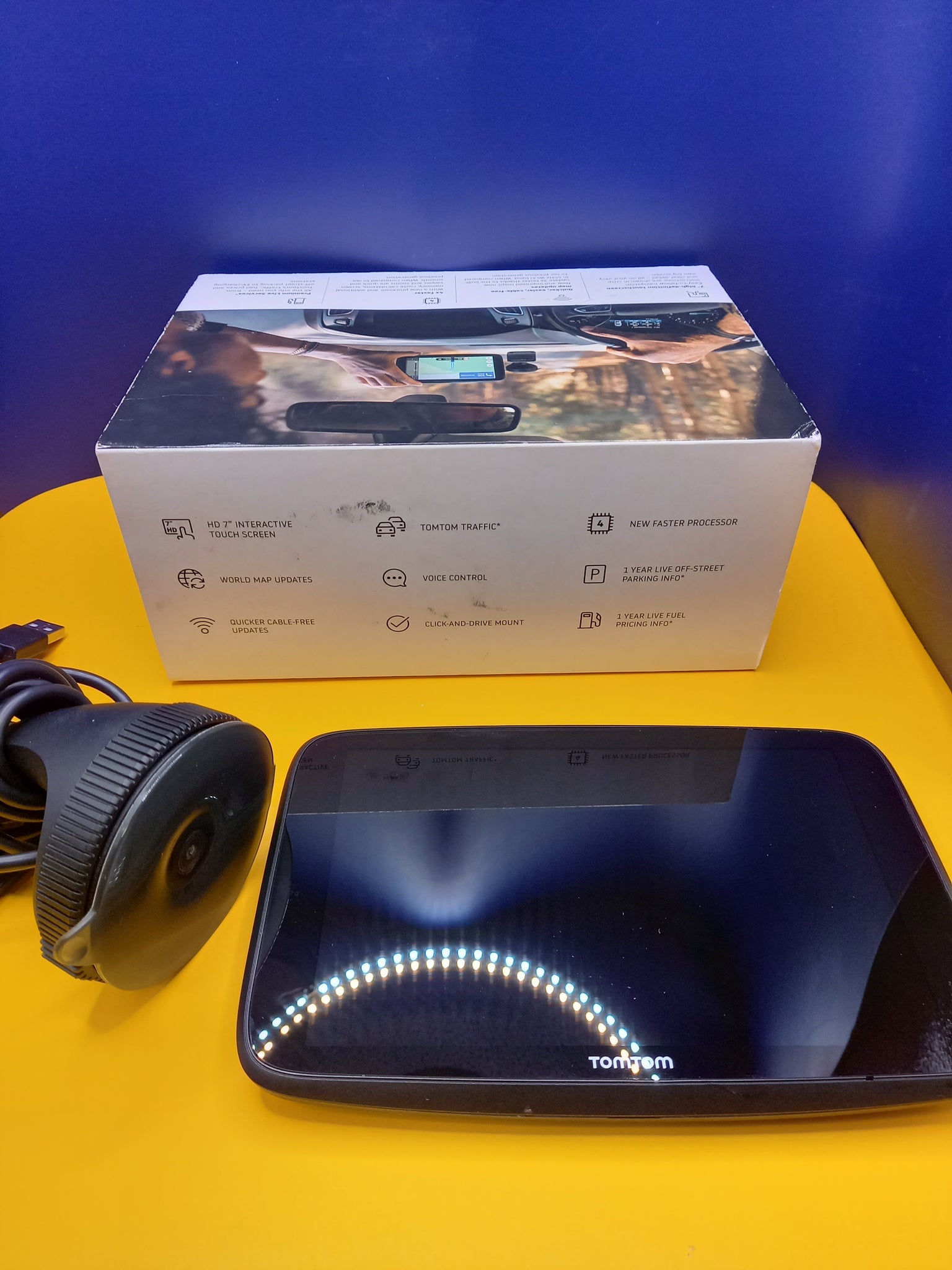 Tom tom in good full working order, no visible scratches, comes boxed with stand and will be packaged well for safe delivery
