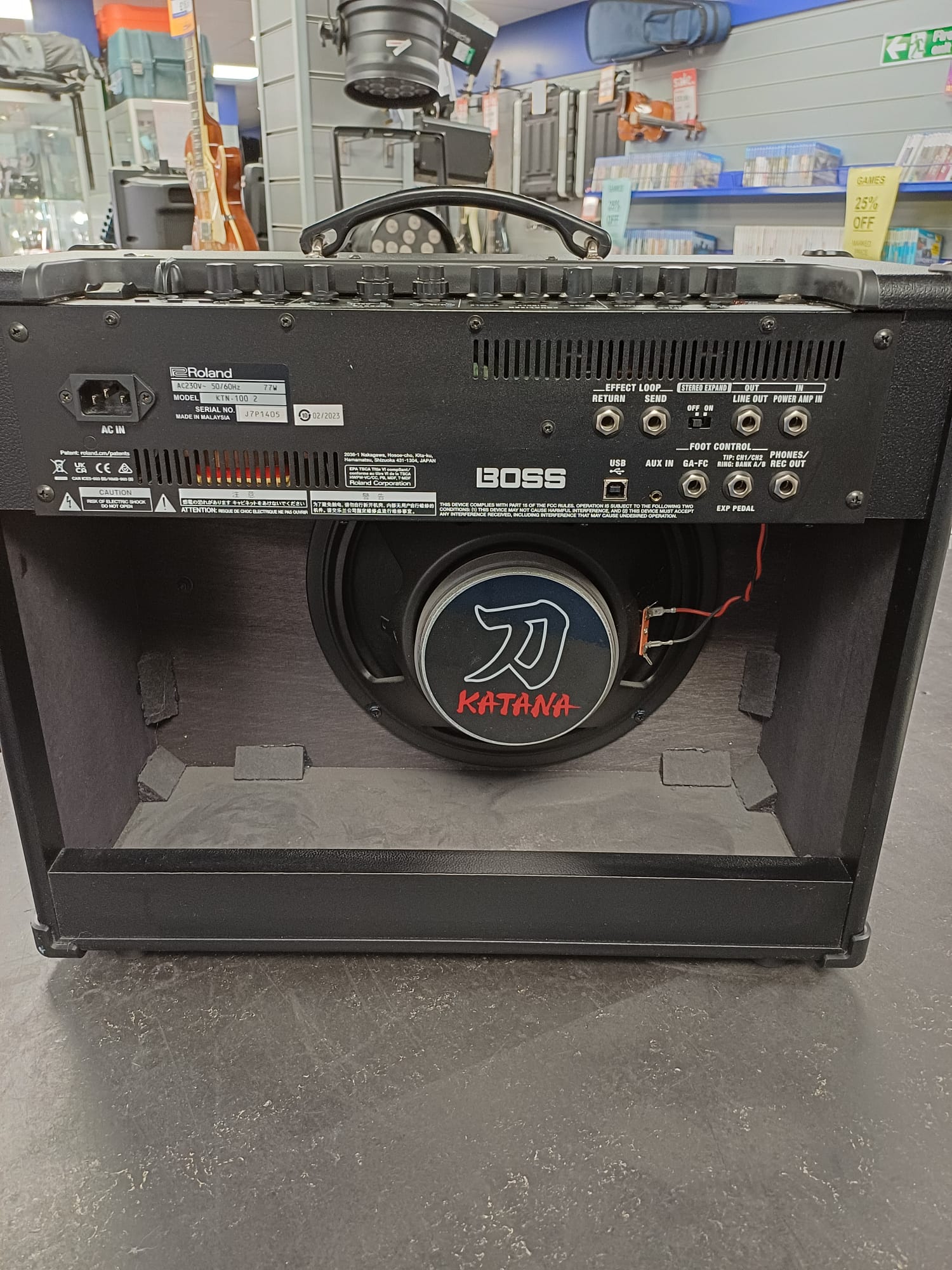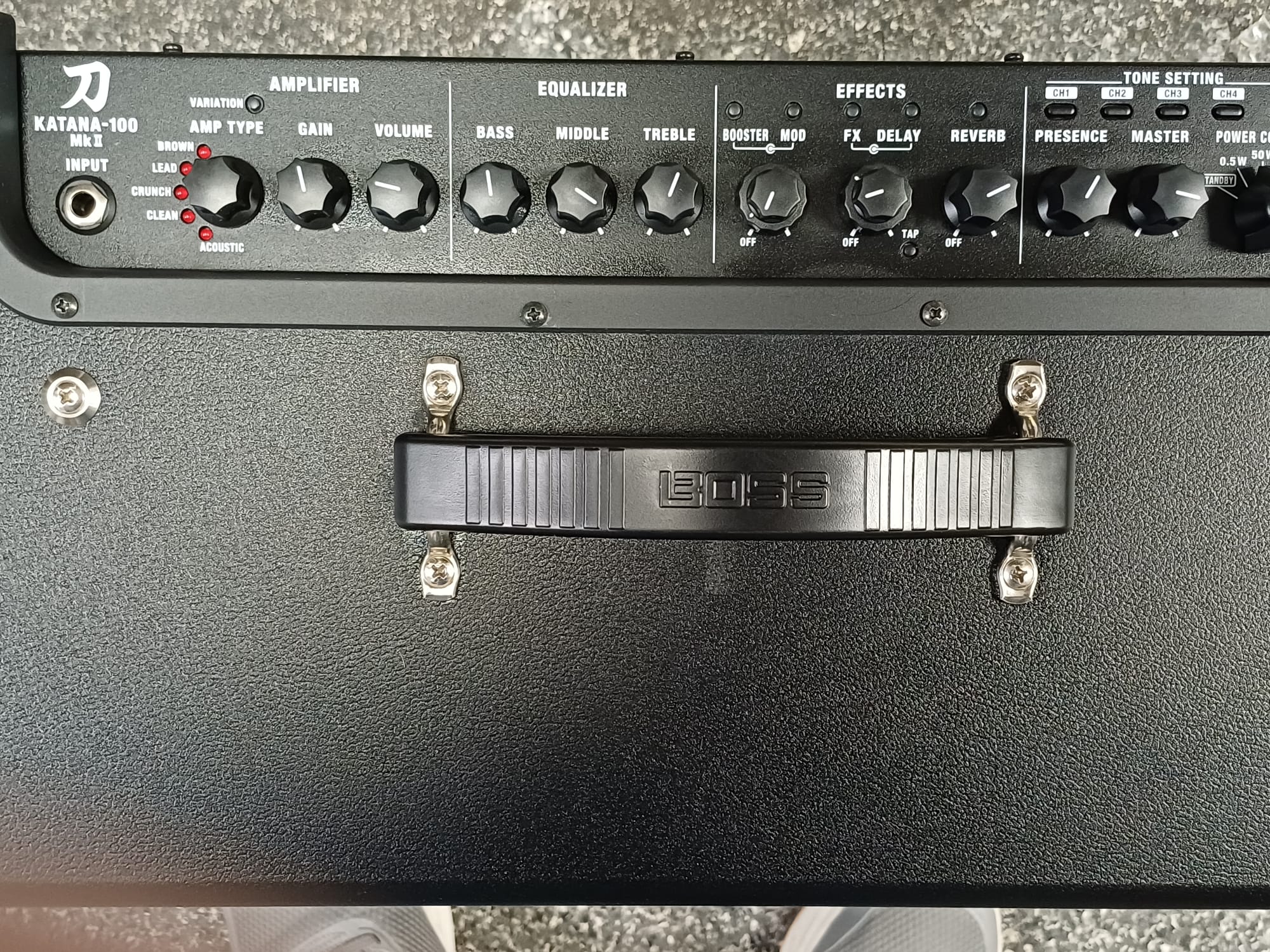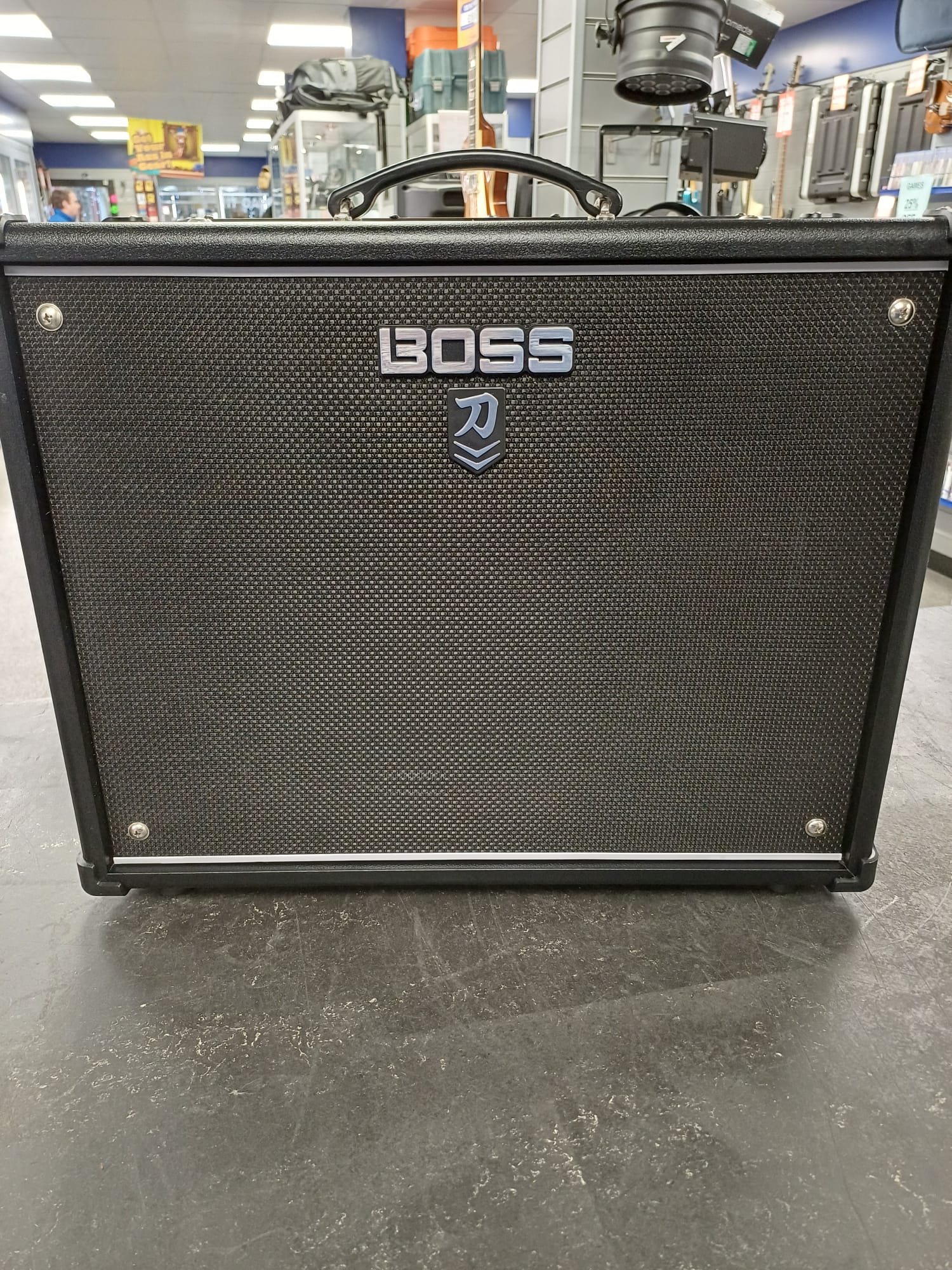 Roland Boss Katana 100 MkII Guitar Amplifier 🎸 Powerful Tone, Endless Versatility - 100-Watt Combo Amp – Delivers powerful sound with enough volume for gigs, rehearsals, and studio sessions. - Custom 12" Speaker – Provides rich, dynamic tone with exceptional clarity, perfect for all playing styles. - 5 Amp Voicings – Choose from Clean, Crunch, Lead, Brown, and Acoustic settings, tailored for every genre and mood. - 60+ Boss Effects – Access a huge library of effects, including modulation, delay, reverb, and more, with customizable presets. - Power Control – Adjustable wattage (0.5W, 50W, 100W) lets you dial in perfect sound levels for practice, recording, or live performances. 💡 Why It’s for You - Gigging Musicians – Reliable and powerful enough for stage performances with versatile tone options. - Bedroom Players – Quiet power settings make it ideal for practice without sacrificing tone. - Tone Tweakers – Built-in effects and deep editing via Boss Tone Studio allow endless sound customization. 🔌 Extras - Dual Channel Options – Switch between two customizable tone settings instantly. - Integrated Effects Loop – Perfect for adding external pedals and gear to your setup. - USB and Line Out – Record directly to your computer or connect to PA systems with studio-quality sound. - Boss Tone Studio Software – Unlock advanced tone shaping and access preset libraries for ultimate control. - Compact and Portable – Lightweight design for easy transport to gigs or practice sessions