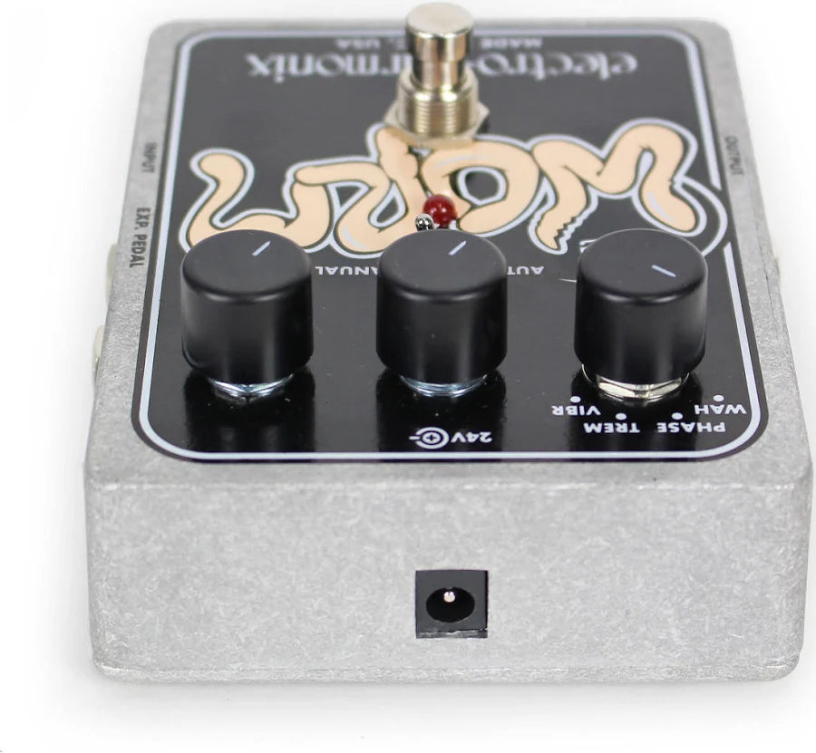 The Electro Harmonix Worm Modulation is an all-analog multi-effects processor featuring Phaser, Tremolo, Vibrato, and a Neo-modulated Wah. That's a lot of modulation for one relatively small enclosure. With expression pedal capability, you can really get involved with minutely altering each effect; sweep the rate of phase, vibrato and wah and alter the level of tremolo by foot- no hands needed. If you need an all-in-one solution to your modulation desires, the EHX Worm has you covered.