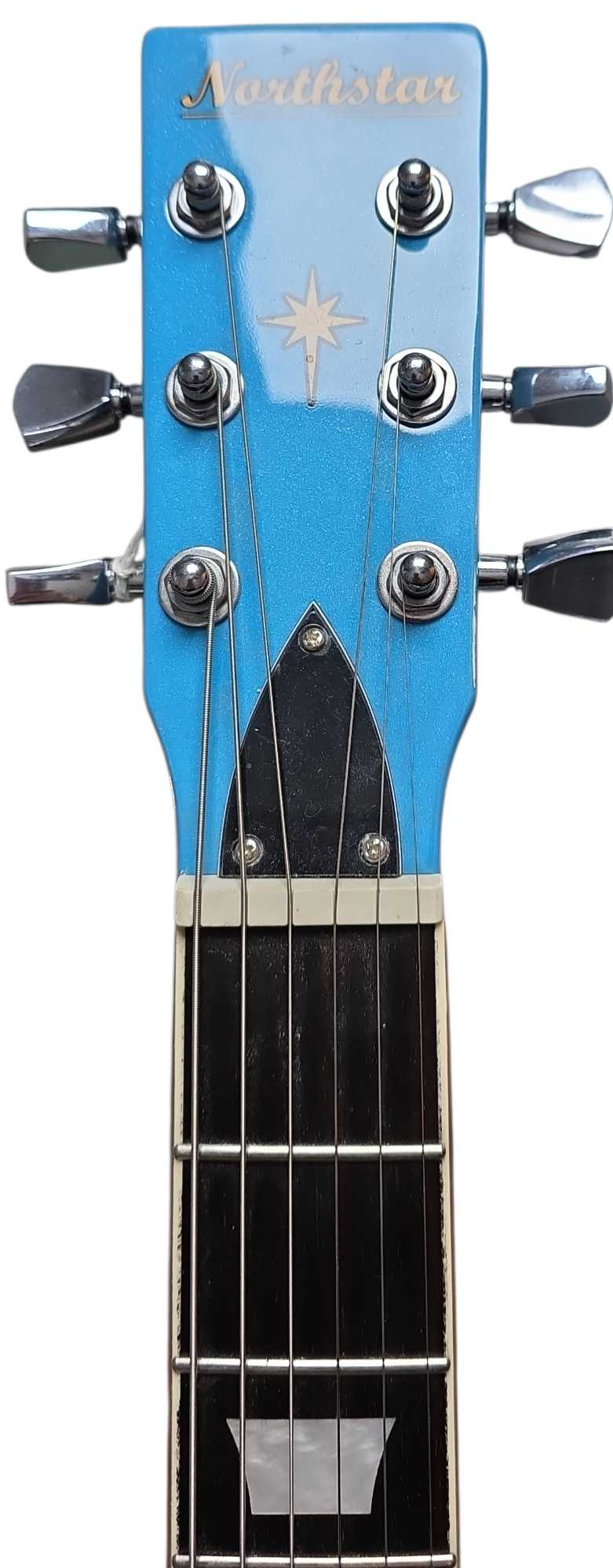 The Northstar NS3CB electric guitar is a testament to both classic design and modern performance, tailored for discerning guitarists who seek both style and versatility. Featuring a single cutaway body shape with a Poplar body and an arched top, the NS3CB delivers a resonant and balanced tone that is well-suited for a wide range of musical genres. Crafted with a one-piece Maple neck, the NS3CB ensures stability and smooth playability, providing a comfortable experience for intricate fretwork and chord transitions. The Rosewood fingerboard contributes to the guitar’s warm and rich tonal character, offering a responsive surface that enhances playing dynamics. Equipped with twin humbucker pickups strategically placed at the bridge and neck positions, the NS3CB offers a versatile array of tones. These pickups deliver powerful and articulate sound, from thick and creamy overdriven tones to clear and dynamic cleans, making it suitable for various playing styles and musical contexts. The NS3CB’s stunning Metallic Cadillac Blue gloss finish adds a touch of elegance and sophistication, making it a visually striking instrument on any stage. This finish not only enhances the guitar’s aesthetic appeal but also provides durability and protection. With its robust construction, versatile pickups, and eye-catching finish, the Northstar NS3CB electric guitar is an ideal choice for guitarists who value both sonic flexibility and visual appeal in their instrument.