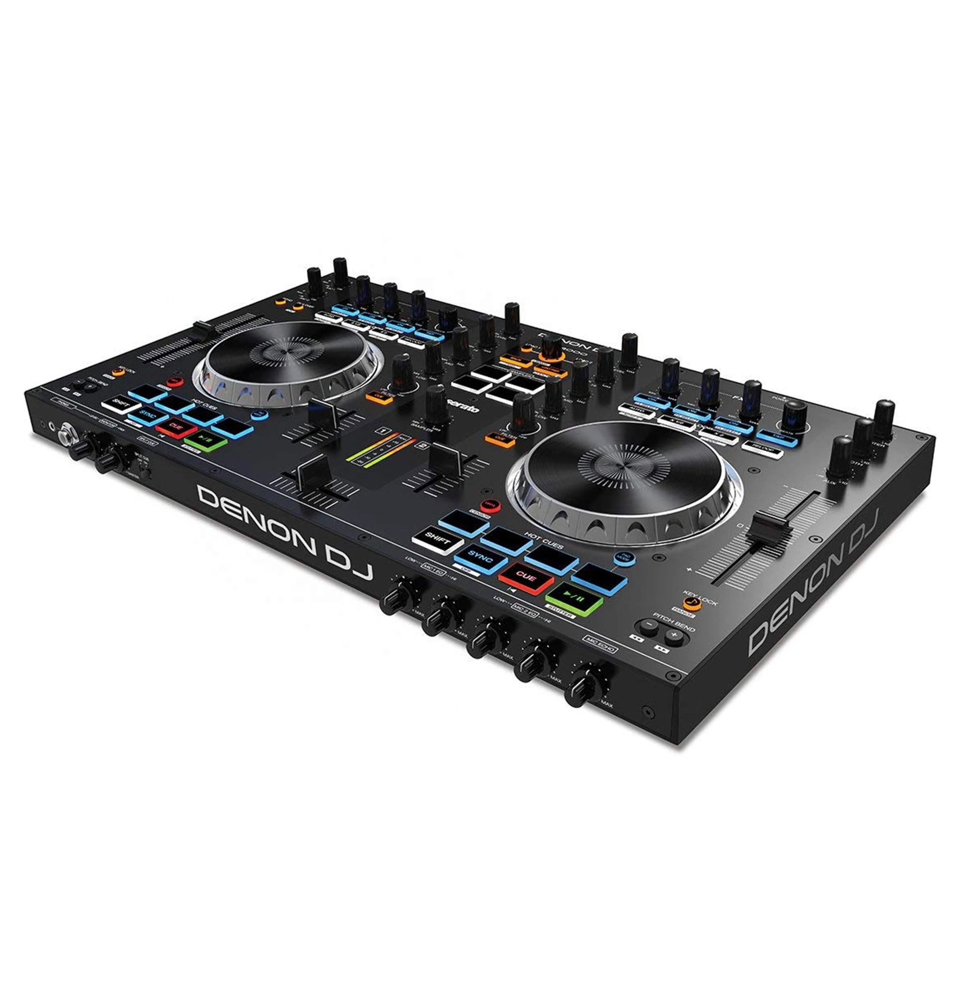 Denon DJ's MC4000 is a 2-deck Serato DJ controller for the professional entertainer wrapping in-demand audio manipulation tools in a robust steel chassis for rugged durability. In addition to precision touch-activated jog wheels, performers get access to dedicated hot cue and sample pads for on-the-fly creativity. Long-throw 100mm pitch faders and an intuitive control layout deliver natural operation when balancing complex set elements. A particularly useful feature-and virtually unheard of at the MC4000's modest price point-is Balanced Booth Outputs, which feeds the program signal to a set of local monitor speakers near the DJ, with the ability to adjust the Booth level independent of the main level. The MC4000 includes Serato DJ Intro and is user-upgradable to full Serato DJ. It's also compatible with Traktor 2, Algoriddim djay Pro and Virtual DJ 8, as well as any other DJ application that supports MIDI mapping. This enables the DJ to use their use their favorite programs and customize their performance according to their personal style and the requirements of the situation.