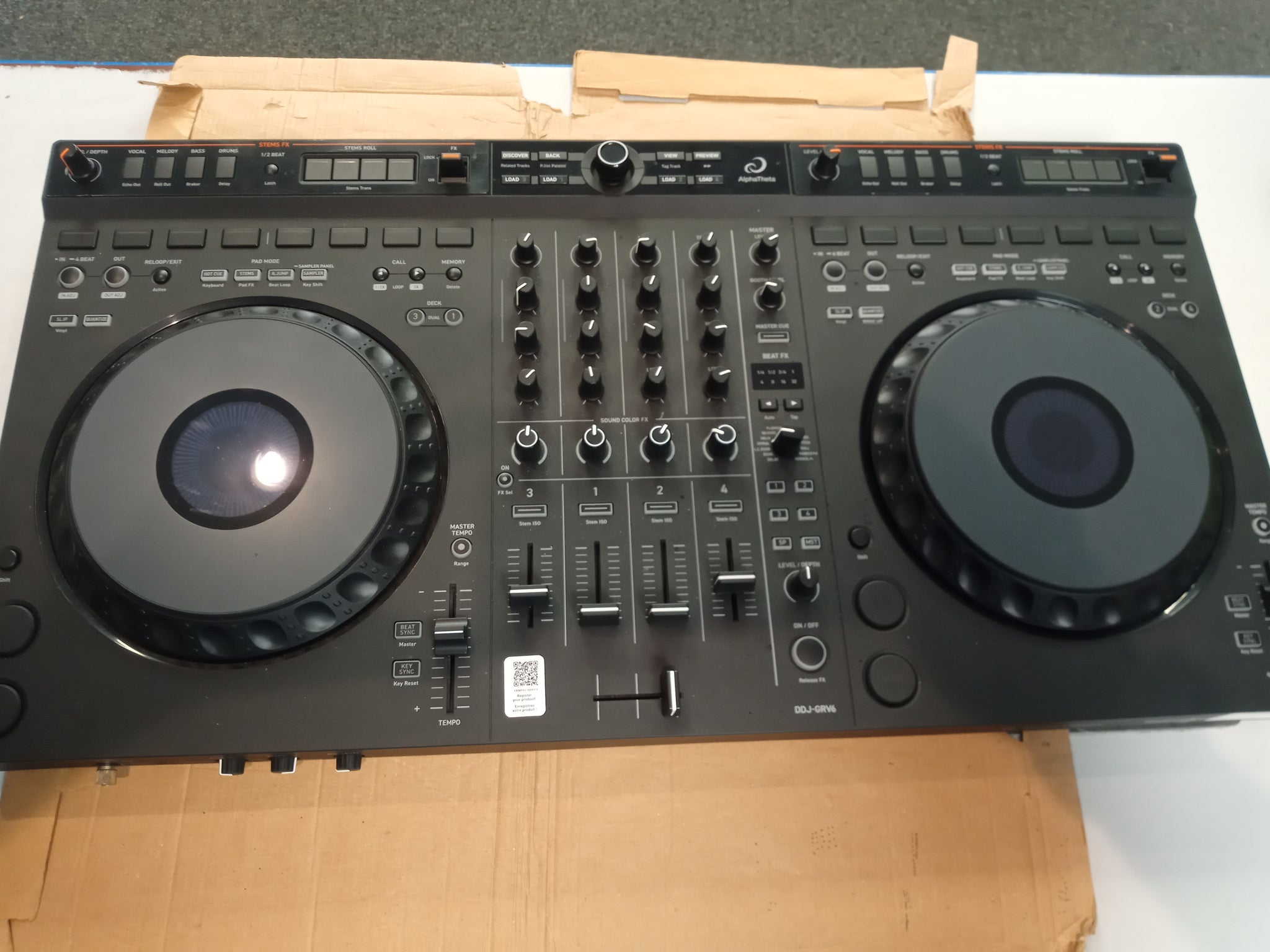 The AlphaTheta DDJ-GRV6 DJ controller is designed for both aspiring and experienced DJs, providing powerful features for creating remarkable mixes. This 4-channel mixer offers a versatile setup with 2 stereo line channels and 1 mono mic channel, allowing a range of input options to suit various performance needs. Its robust frequency response ranges from 20 Hz to 20 kHz, ensuring clarity of sound at both low and high frequencies, while the built-in BEAT FX effect processor adds creative flair to the mixes. The controller is USB bus powered, ensuring easy connectivity and setup, perfect for on-the-go performances. Innovative features such as the Groove Circuit function, Discover function, and track suggestion feature enhance the DJing experience, making it easier to find and blend tracks seamlessly. The ergonomic control types, which include knobs, faders, and jog wheels, allow for intuitive operation, enabling DJs to focus on their creativity. With headphone output and a built-in Kensington security slot, the DDJ-GRV6 prioritizes both performance and security, making it an ideal choice for any DJ setup.