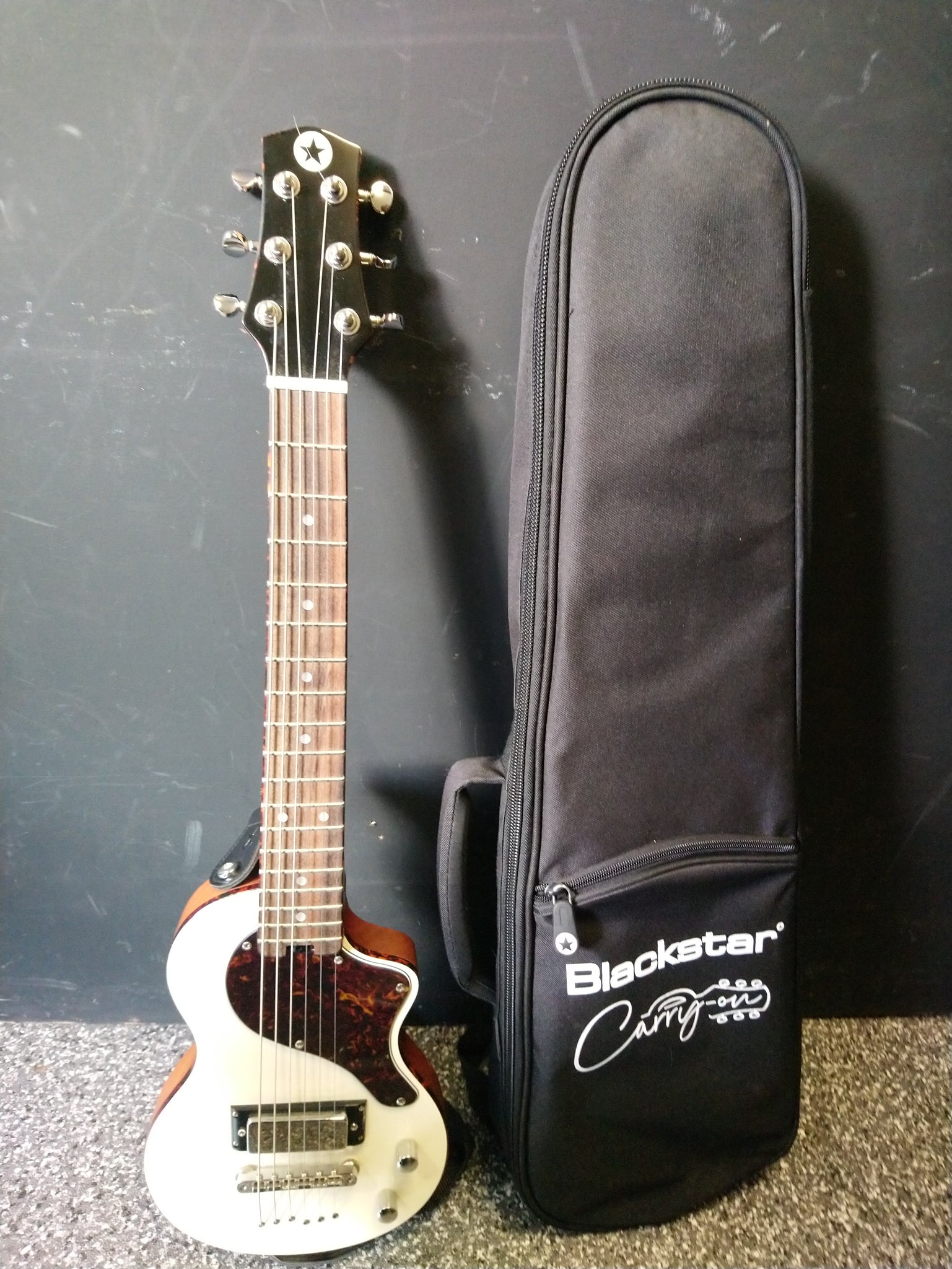 Unleash your creativity. Live up to your potential. With the Blackstar Carry-On Travel Pack, there's nothing stopping you. Whether you're just finding your feet or an accomplished gigging musician, this brilliantly affordable pack holds everything you could ever need. Take your guitar with you wherever you go thanks to its compact and portable size, the premium travel bag then ensures it won't suffer any knocks or scrapes on the road. Be ready to play anywhere using the strap and picks which are also included, the amPlug2 FLY headphone amp then promises amazing tone. And even better, quickly jot down any lyrics in the A5 notebook when you get a sudden burst of inspiration. The guitar itself is nothing short of fantastic. Renowned for their reputable amps, Blackstar know a thing or two about powerful sound. The tone of this guitar belies its portable size and incorporates all the electrifying goodness of a full-sized instrument thanks to a humbucking pickup. Crafted from okoume, the body and neck are amazingly lightweight, so you can play for hours without feeling that dreaded shoulder strain. Sculpt your sound using the volume and tone controls and even achieve single-coil tones thanks the coil-split feature. The Blackstar Carry-On Travel Pack is versatile and designed for ambitious players.