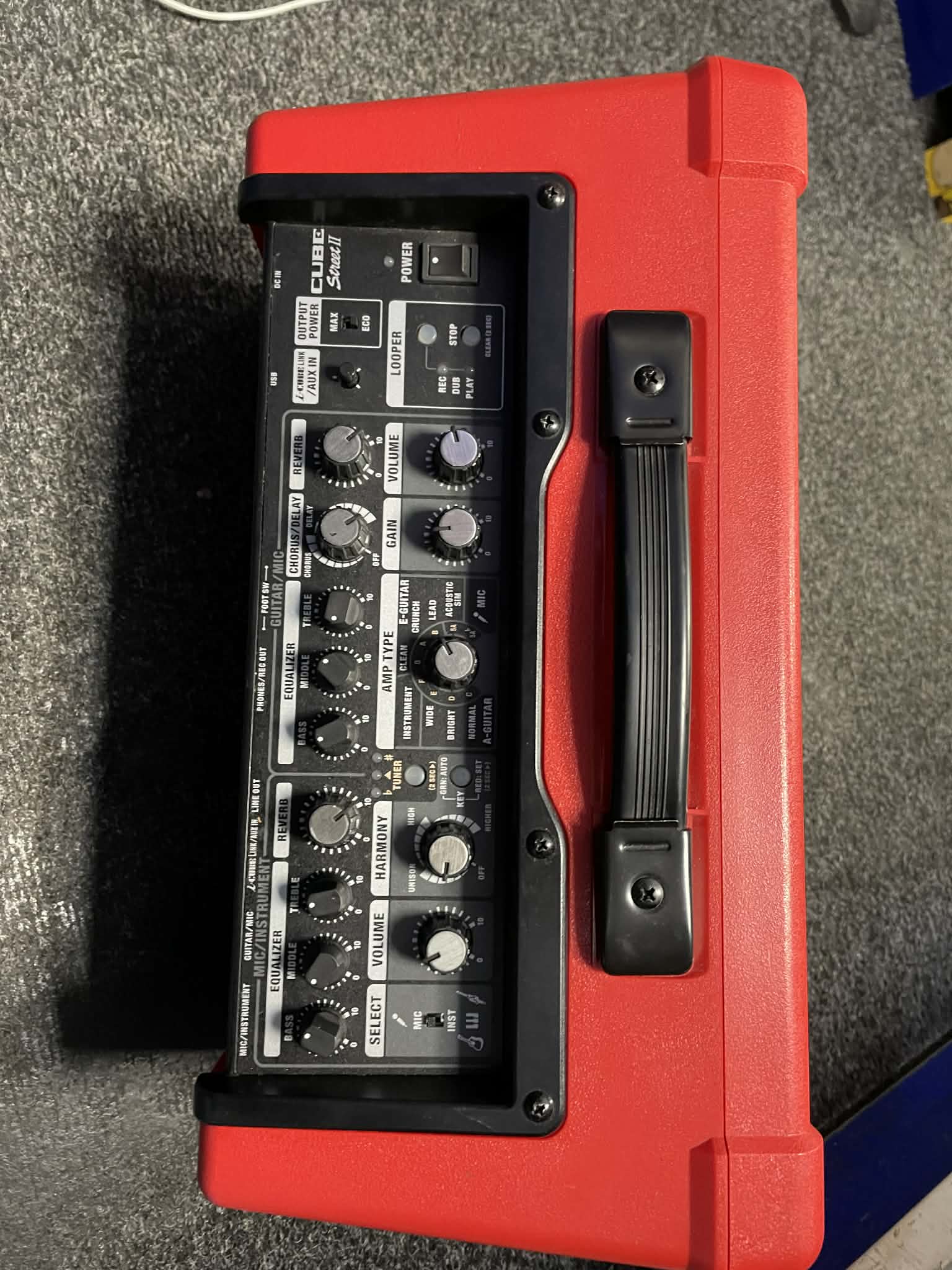 Boss cube street 2 Great working condition Missing 1 leg ( back left) Tested in store moulded ABS housing for extra durability and lighter weight angled shape for improved monitoring and sound projection mic/inst channel with harmony, 3-band EQ and reverb inst/line channel with 9 amplifier types, 3-band EQ, chorus/delay, reverb, and tuner built-in lopper with 45 second stereo recording time automatic harmony function with three modes: unison, high, higher record or livestream to a PC or smartphone via USB