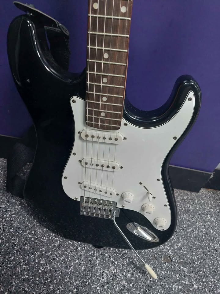 Burswood Black Electric Guitar With Guitar Bag & Stand