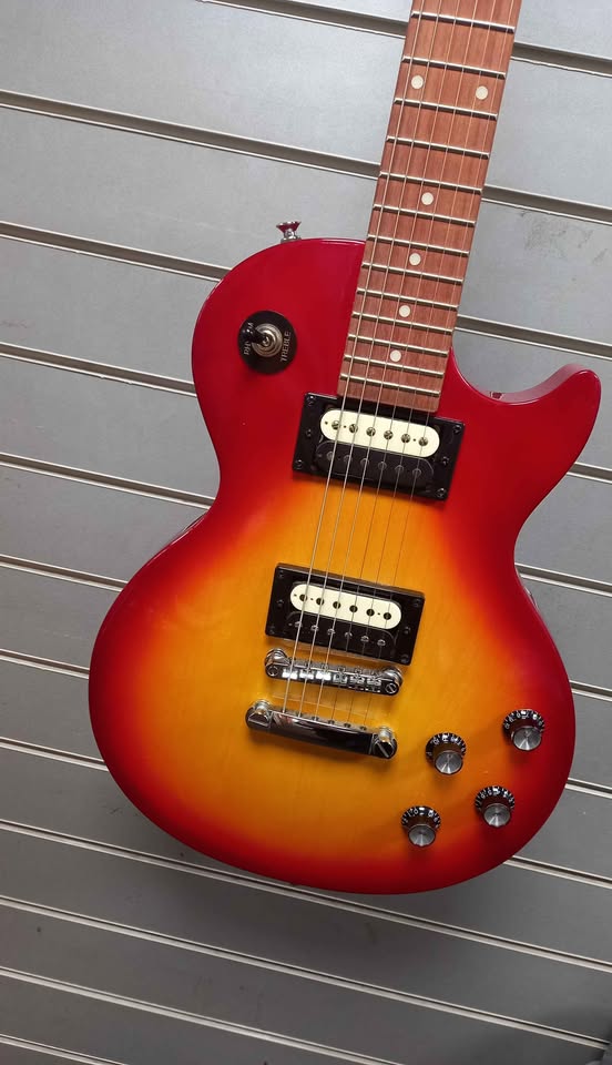 Epiphone Les Paul Studio in Cherry Sunburst - CC Music ShopThe Epiphone Les Paul Studio in Cherry Sunburst (often Heritage Cherry Sunburst) is a popular, affordable electric guitar known for delivering classic Les Paul tone and looks, featuring a mahogany body, maple top, humbucker pickups (like the 650R/700T), and a comfortable, fast neck, making it great for rock, blues, and punk players seeking iconic style and sound without the high price tag of its Gibson counterpart, offering great value and solid performance for beginners and intermediate players.