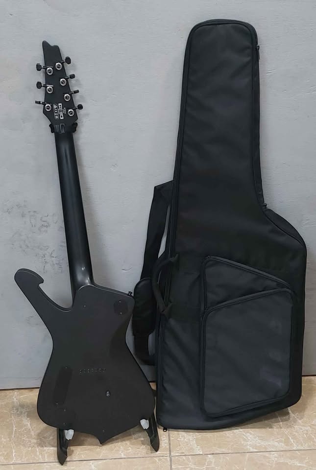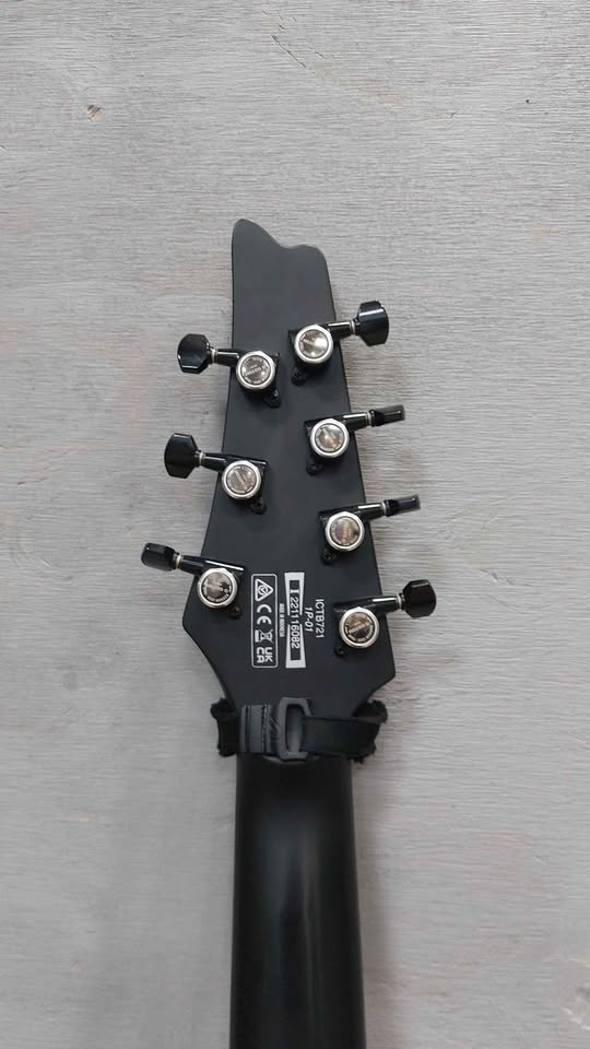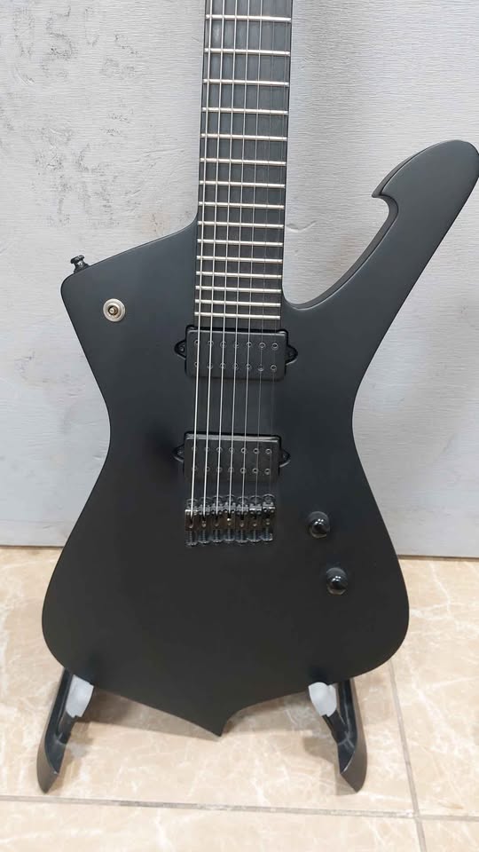 7-String Electric Guitar Iron Label series Body: Okume Neck-through five-piece neck: Maple/walnut Fretboard: Ebony Neck profile: Wizard II-7 - thickness at 1st fret: 19 mm, at 12th fret: 21 mm Fretboard radius: 400 mm Nut width: 48 mm Scale length: 648 mm 24 Jumbo frets Nut: Plastic Pickups: 2 DiMarzio D-Activator-7 humbuckers Volume and tone controls 3-Way switch Bridge: Mono-Rail Black hardware Gotoh MG-T locking machine heads Original strings: .010 - .064 Colour: Black Flat Incl. gig bag