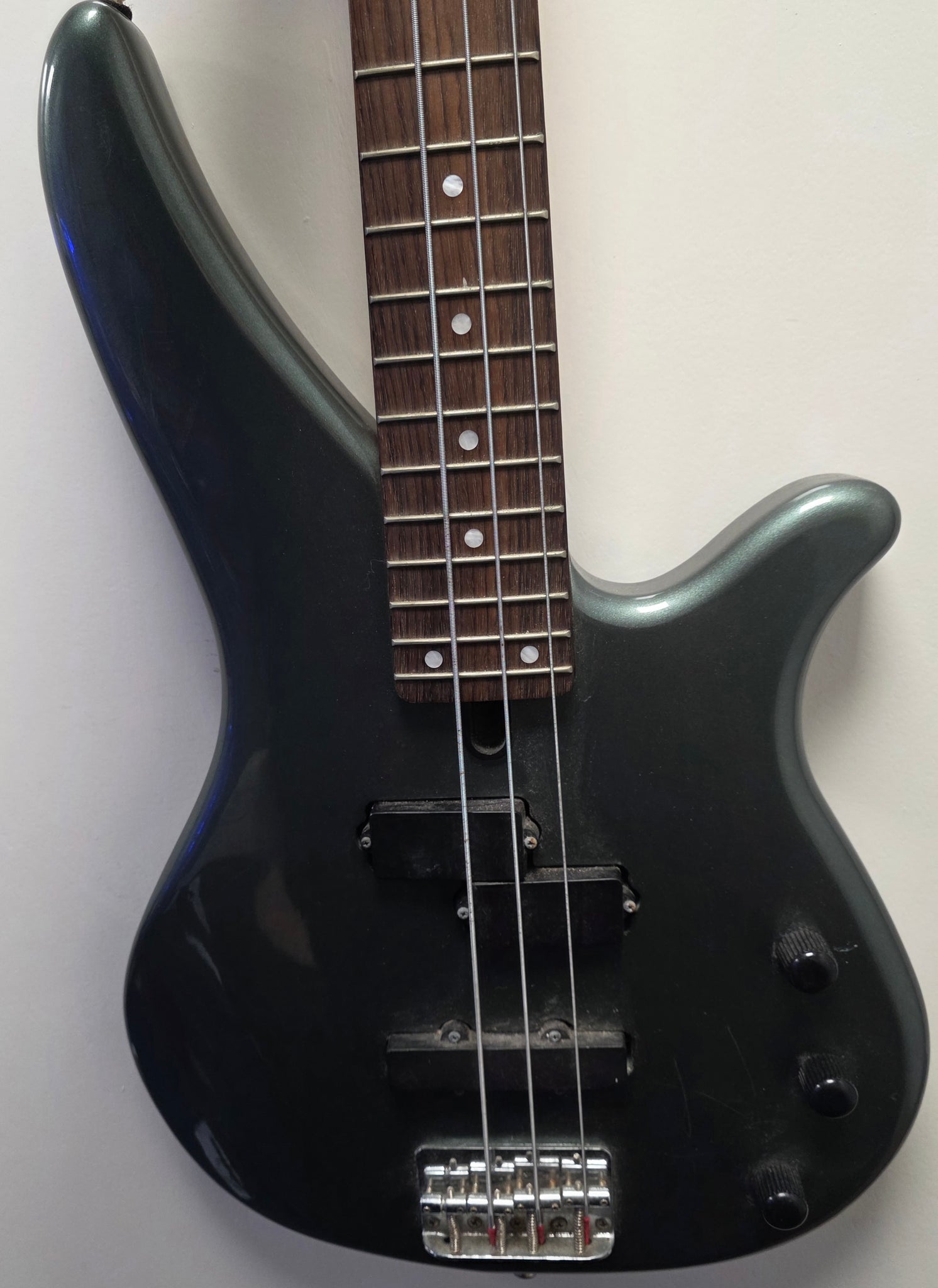 The Yamaha RBX270 is a 4-string electric bass guitar featuring a solid alder body, a 34-inch maple neck, and a 24-fret rosewood fingerboard, known for its versatile PJ (split coil/single coil) pickup configuration. Designed for comfortable playability, it features a slim neck profile and die-cast tuners, making it a popular choice for beginners and gigging musicians.