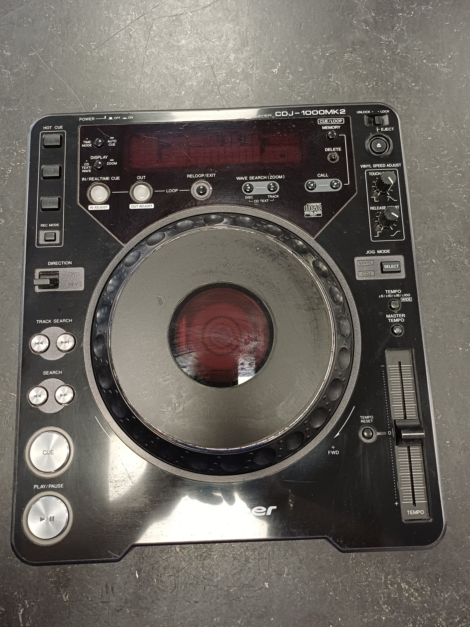 Pioneer CDJ-1000MK2 🎧 🌟 Club-Standard CD Deck The legend that defined digital DJing - precise control, rugged build. 💻 Key Features: - Playback: Audio CD, CD-R/RW with MP3 support - Control: Jog wheel with adjustable feel, vinyl mode, pitch bend - Extras: Hot Cue, Loop, Master Tempo, BPM counter, slot-in drive - Build: Pro-grade, rack-mountable, iconic club layout