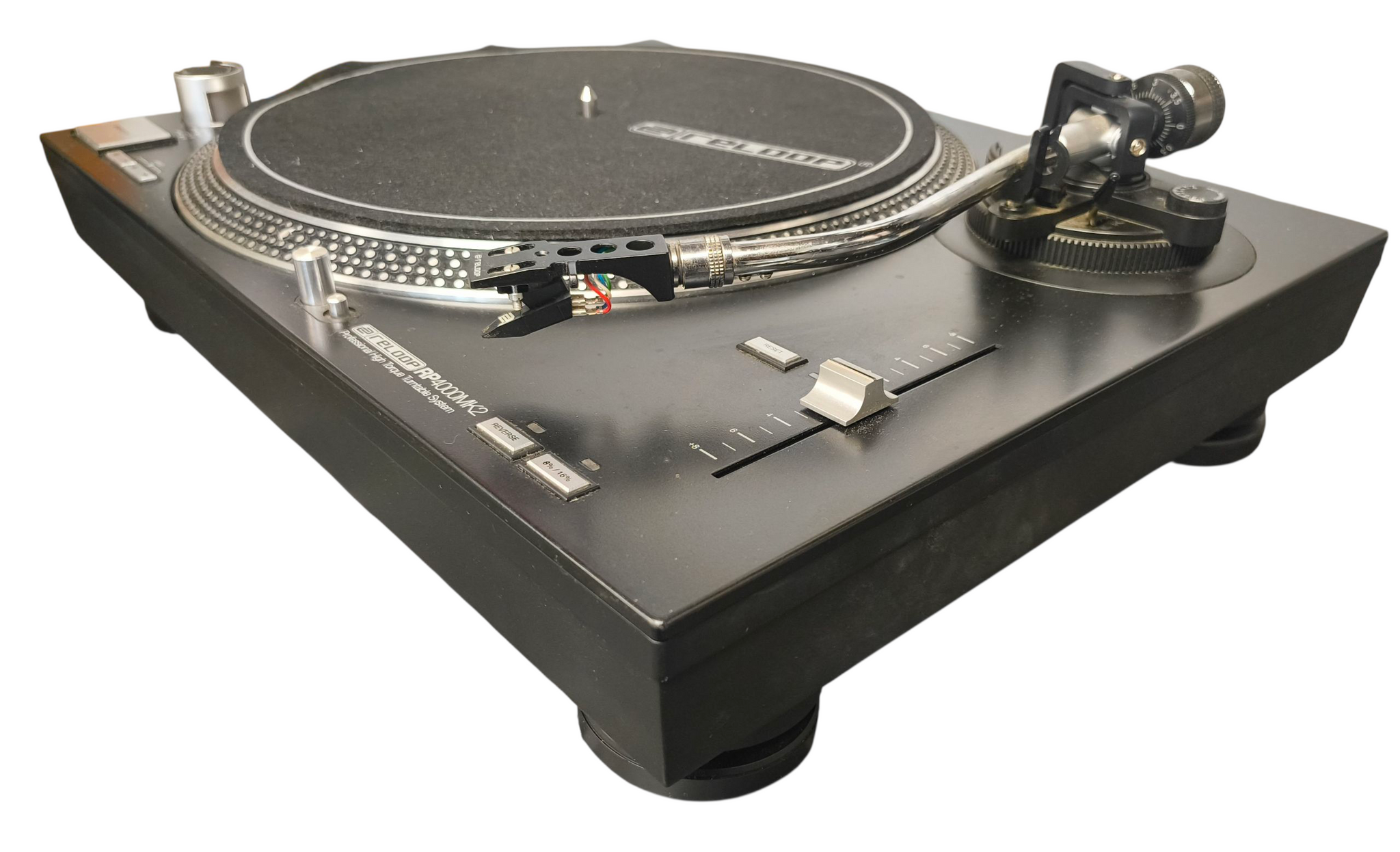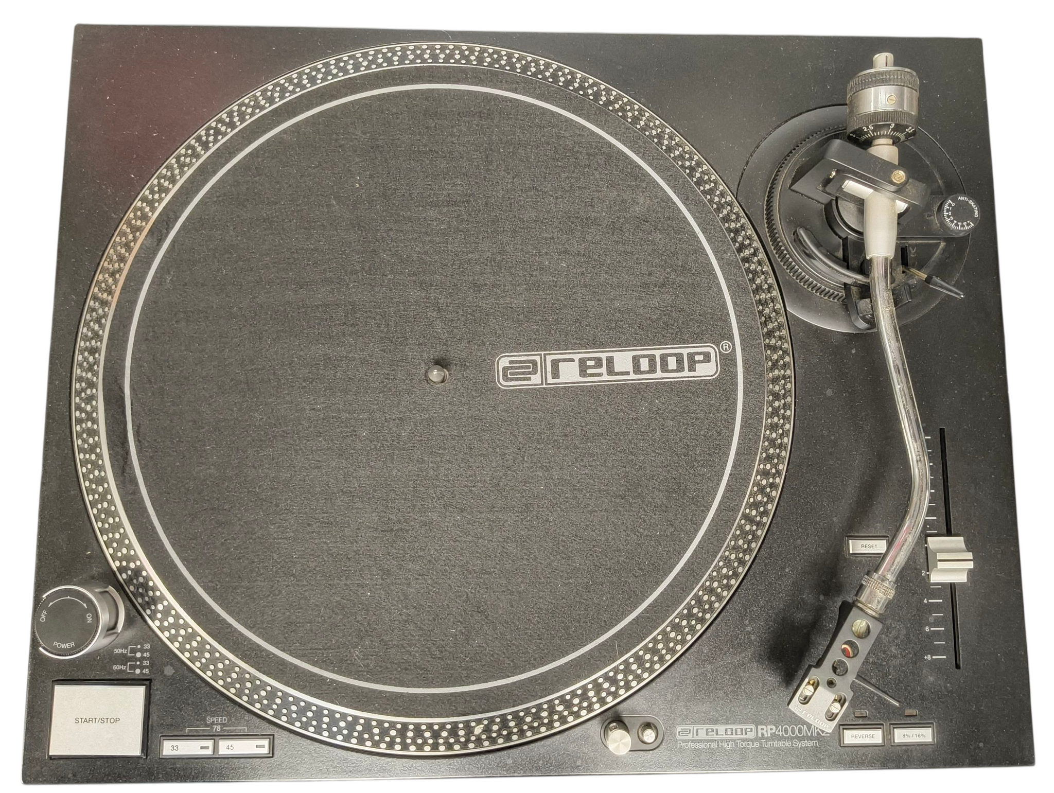 Reloop DJ Turntable The Reloop RP-4000 MK2 is a solid DJ turntable for advanced users. The new MK2 version comes with several improvements, including a newly developed top panel and reworked metallic buttons with enhanced feel as well as a variety of functionsThe precision-engineered die-cast platter is accelerated by a powerful motor with a high-torque direct drive of more than 1.8 kg/cm. The precise motor control with 3 speeds (33 1/3, 45 & 78 rpm) allows for the RP-4000 MK2 to play back any record. The pitch section with a selectable range of +/-8% and +/-16%, respectively, is suitable for the finest pitch adjustments. The RP4000 MK2 comes with the high-quality OM Black pick-up, handmade by Ortolan in Denmark, pre-fitted to a headshell ready for immediate playback. The RP-4000 MK2 features a statically balanced s-shaped tone arm with hydraulic lift and anti-skating mechanism. Via the universal connection for pick-up systems (SME) a large number of pick-up systems can be connected. The new deep black metallic top panel construction is equipped with metallic buttons for start/stop, platter speed, pitch control, reverse function and tempo reset. The improved touch upon hit offers a clear haptic feedback. The sturdy construction with optimized damping features and shock-absorbing feet improve isolation from unwanted vibrations.