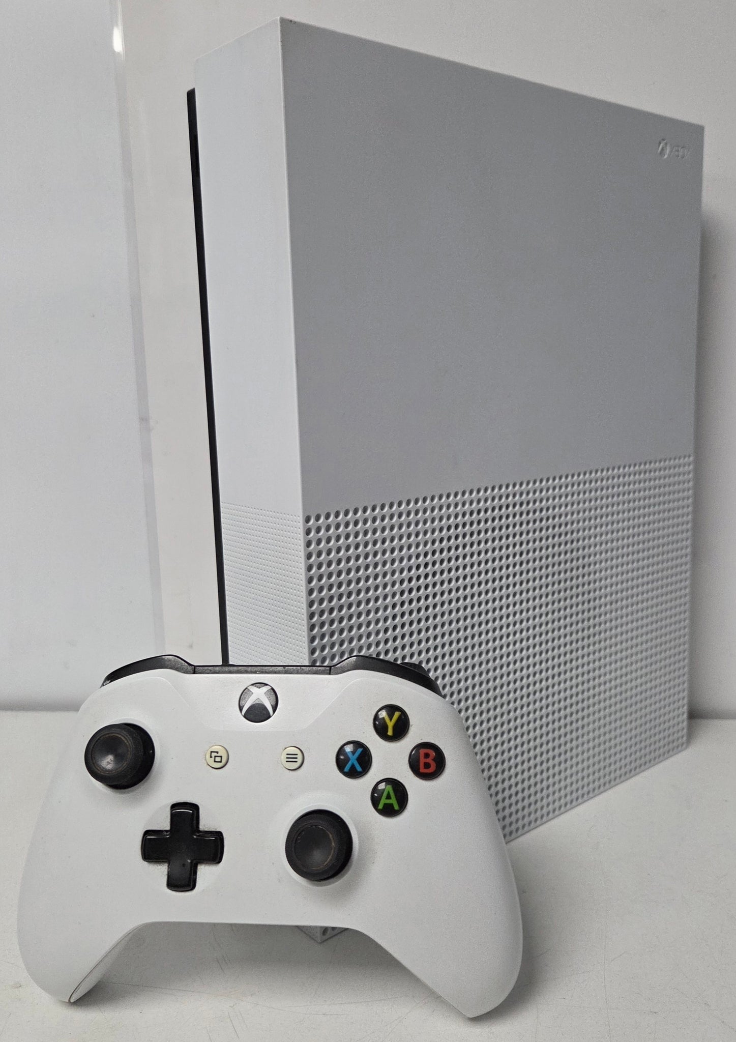 Unboxed. includes power lead and one controller. Some scuffs to the casing