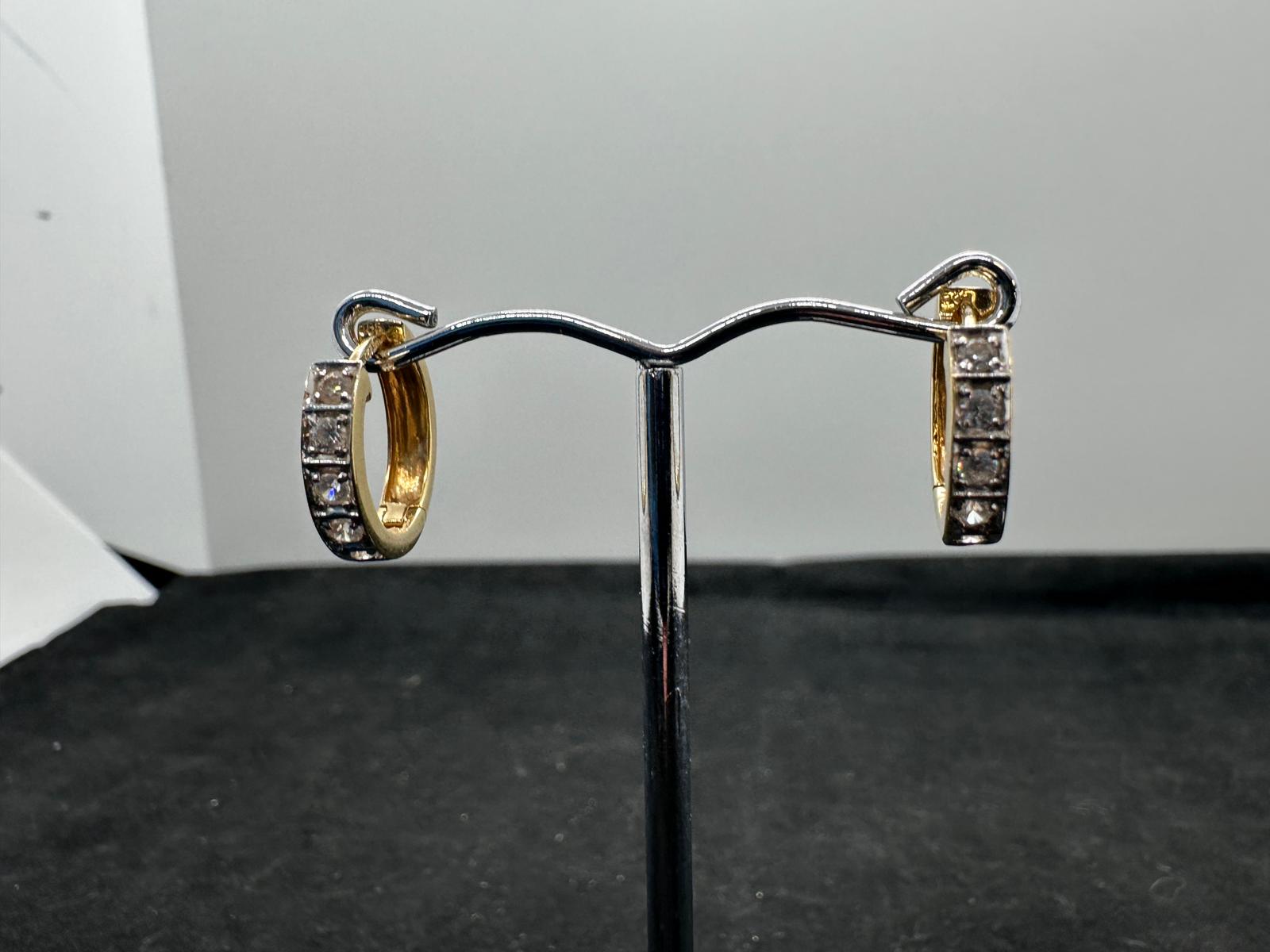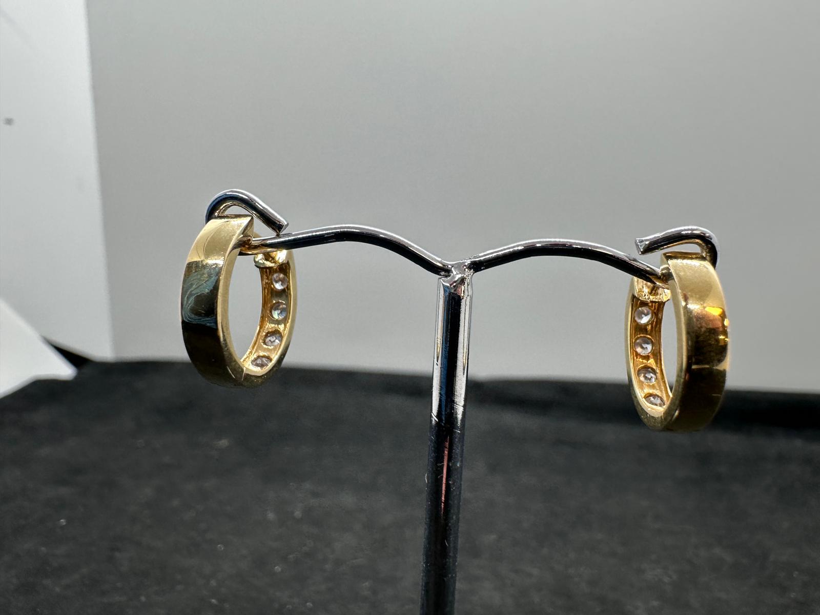 14ct Gold Hoop Earrings with 6 clear gems in each. 3.1g