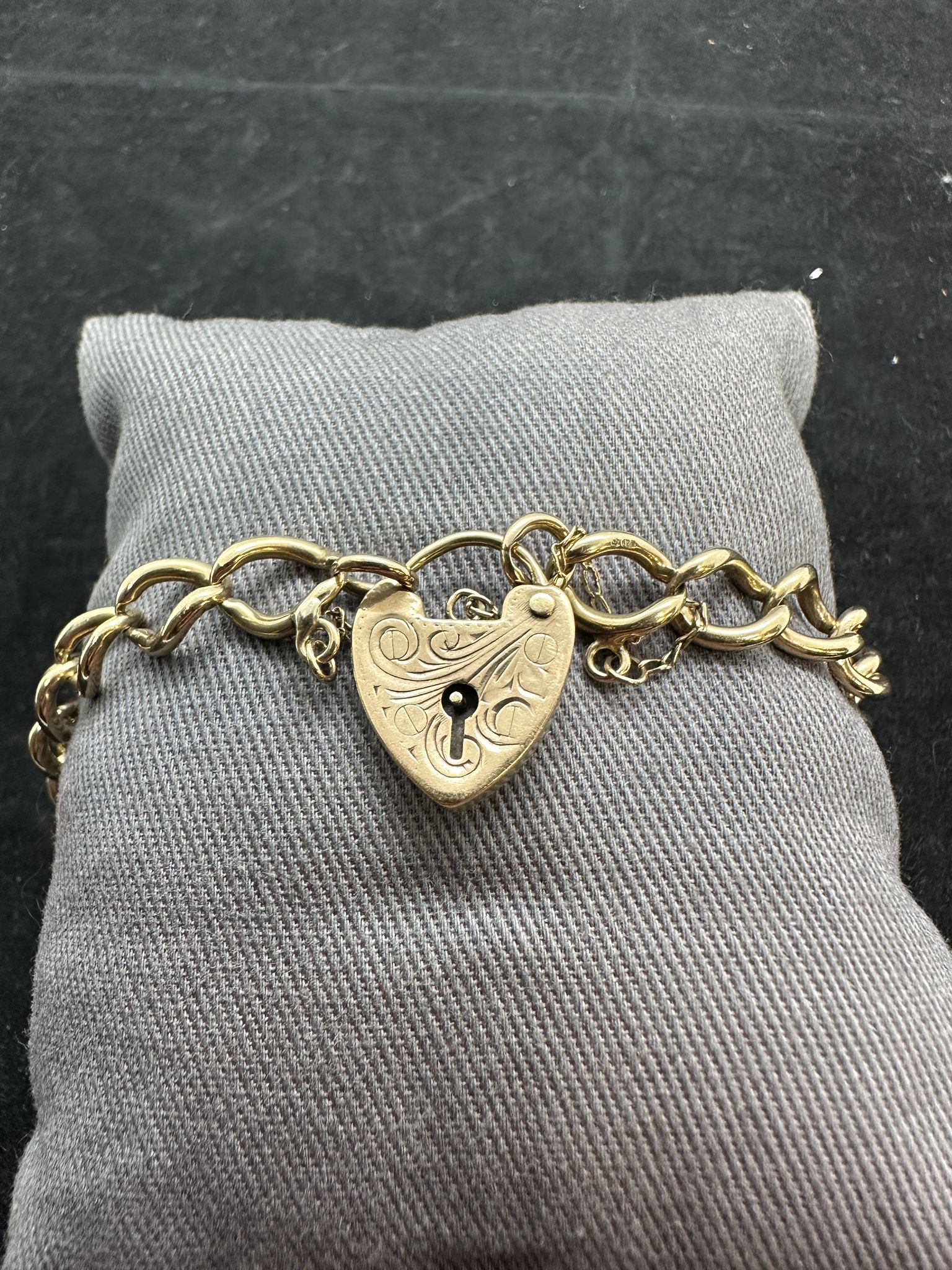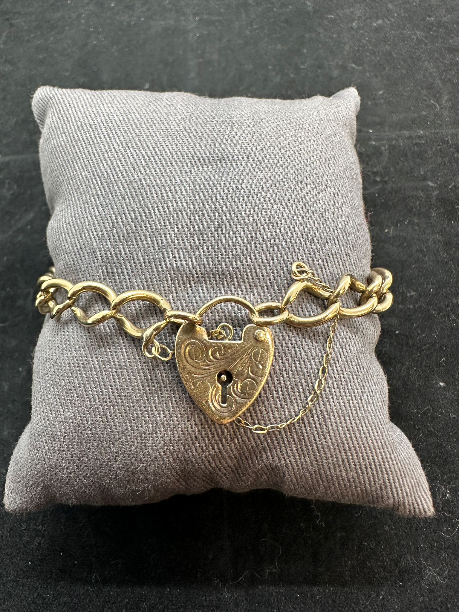 9ct Belcher Heart Lock Bracelet 9 Inch