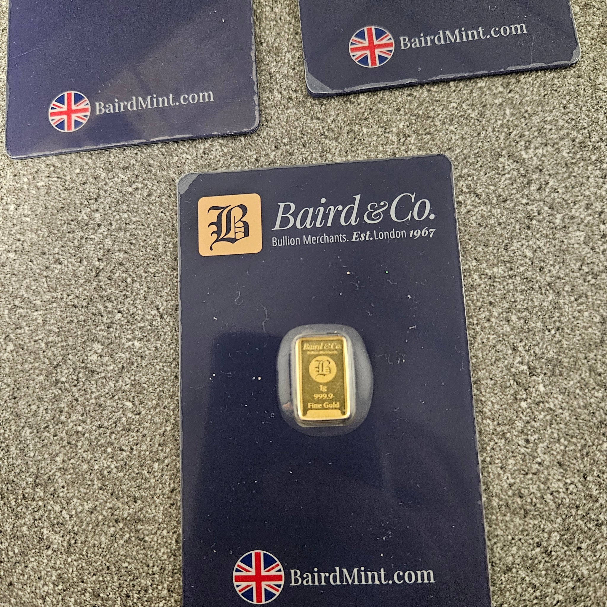 1g 999.9 fine gold bars, sealed in packs There is 3 available at they are £129.99 each