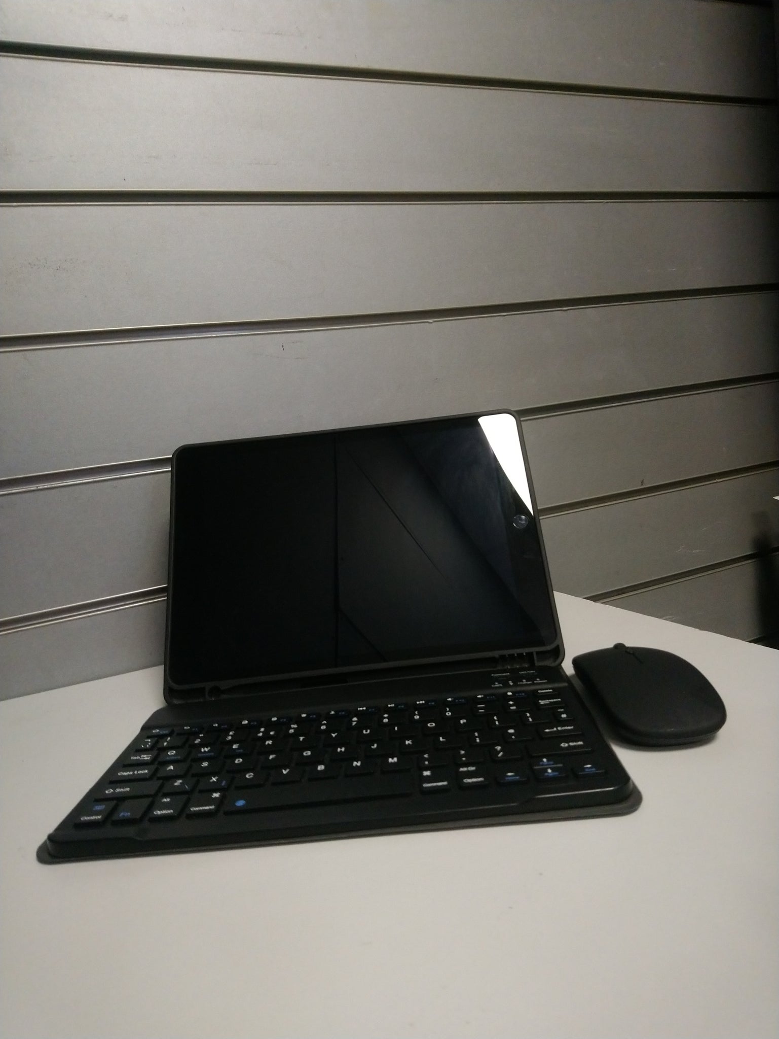 Item is in really good working condition, There is a slight scratch on the screen. But nothing that affects the usage of the ipad. Ipad does come with a case, wireless keybored and wireless mouse