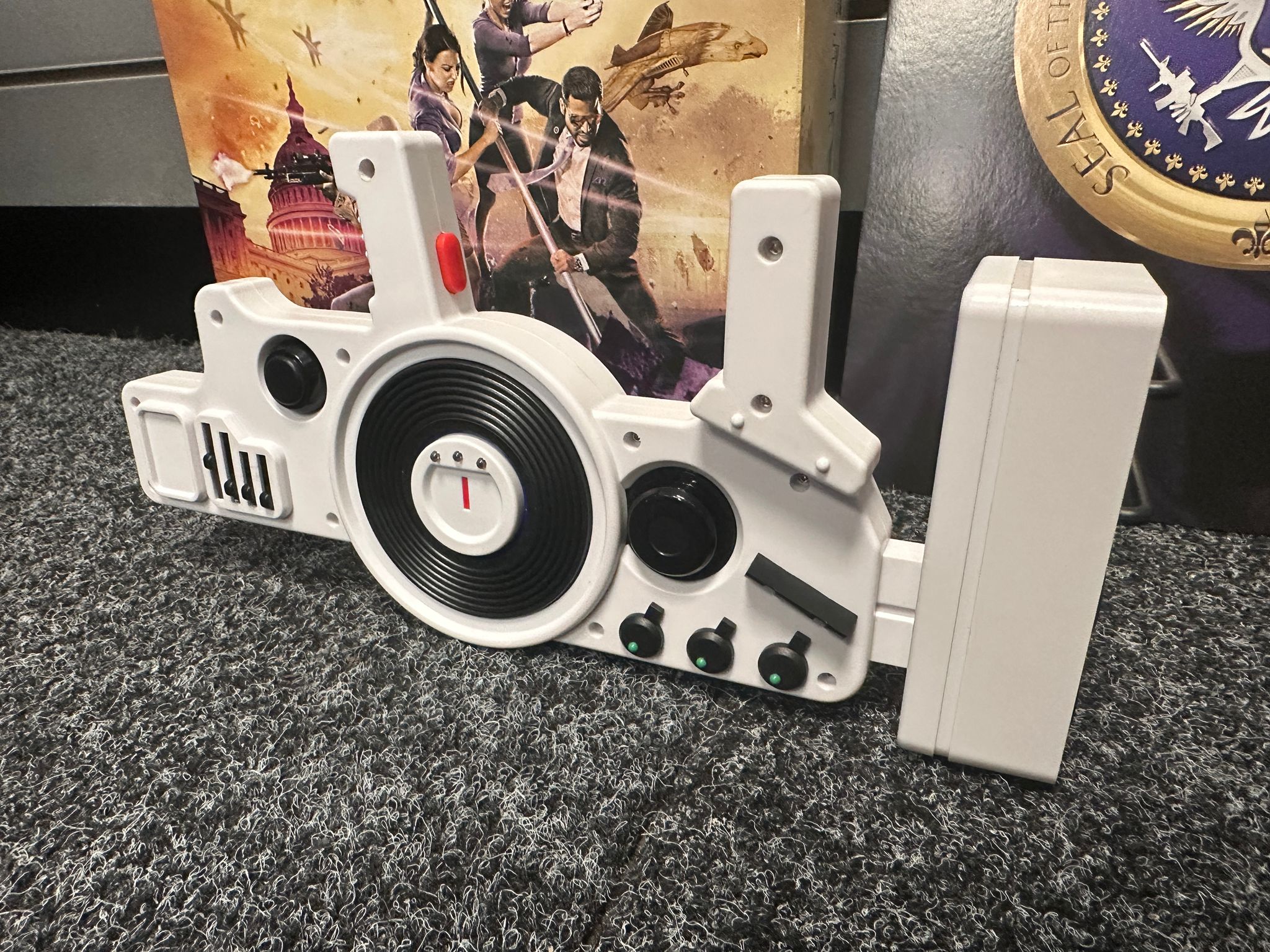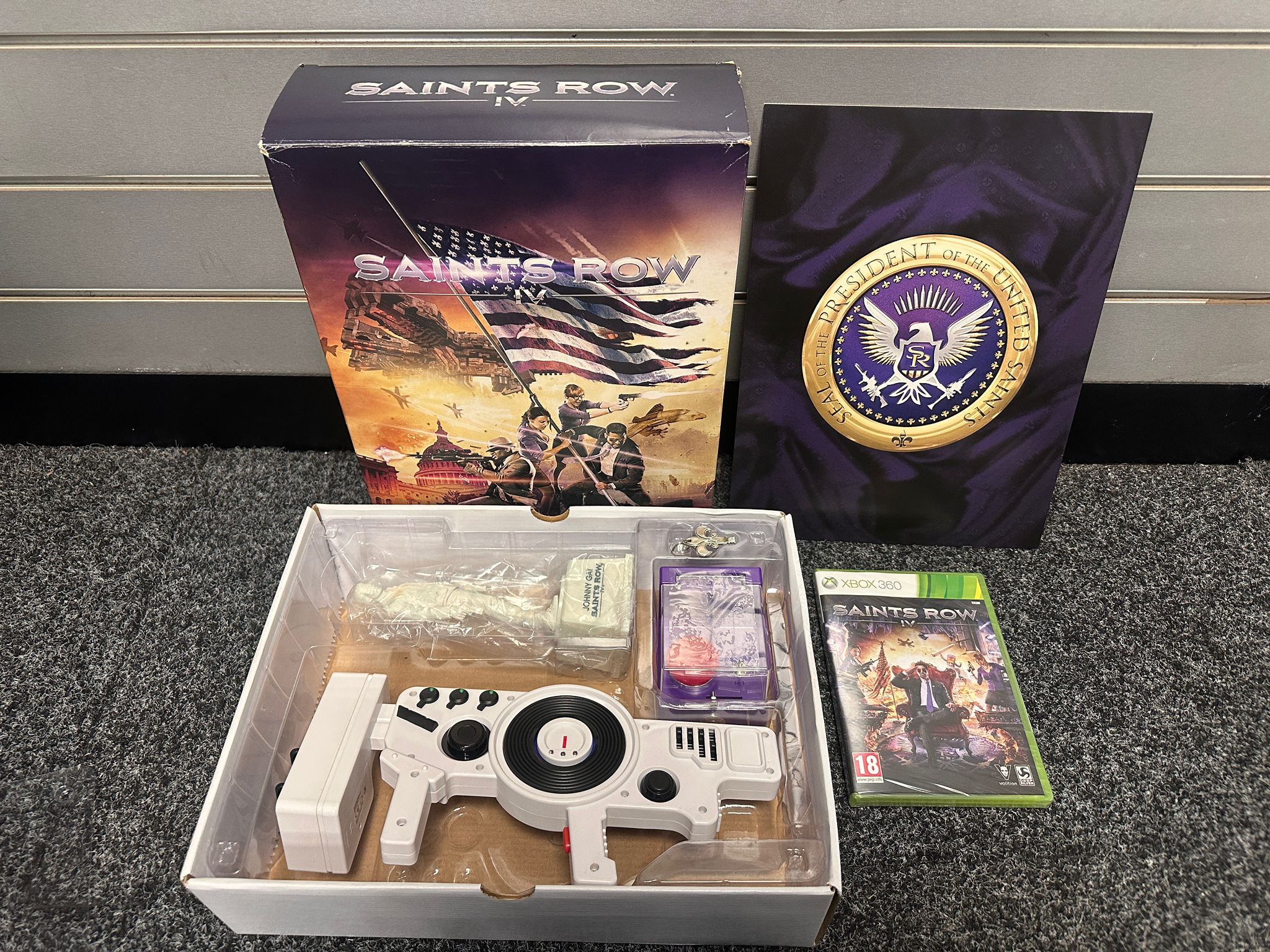 A premium bundle that packs in a 12-inch Dubstep gun (with laser and sound), as well as a Dubstep Doomsday button and a Johnny Gat statue. The bundle includes all perks featured in the Commander in Chief version of Saints Row IV. This includes alternate box art, a 'Merica weapon, an Uncle Sam Suit, and a Screaming Eagle jet. In Saints Row IV, players have superpowers and moonlight as the president of the United States. One of the objectives of the game is to save Earth from an alien invasion.