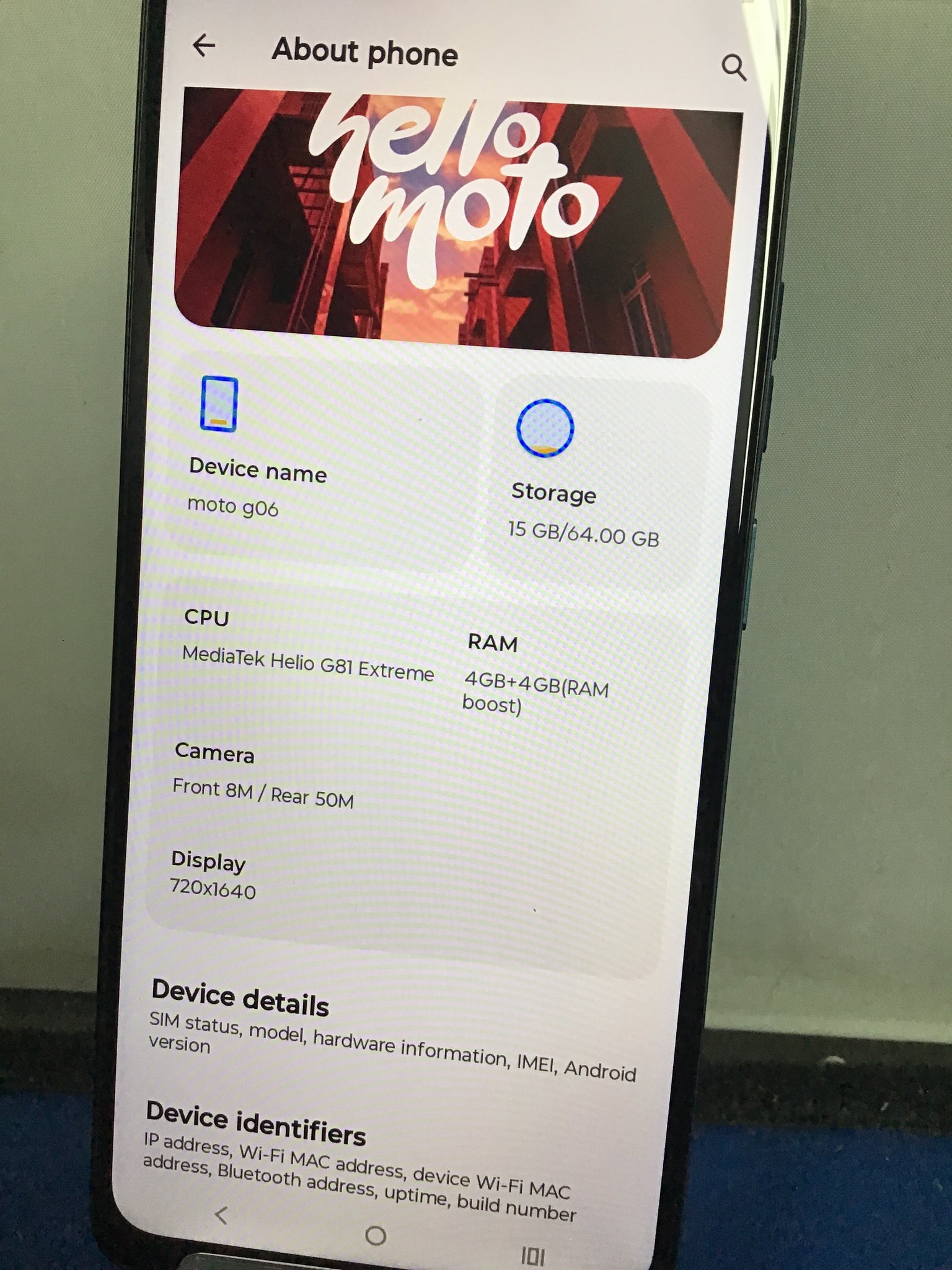 Value in your pocket Introducing moto g06, a phone designed to go way beyond your expectations. Bring your favorite shows and movies to life on a massive, bright 6. 88"display, our largest ever on moto g, with stereo speakers and Dolby Atmos sound. Snap stunning photos in any light using a 50MP AI-powered camera system.( 1) Get super-efficient multitasking with up to 12GB of RAM using RAM Boost.( 2, 5,6, 10) Enjoy peace of mind thanks to advanced durability features and a premium design, including IP64-rated water protection(3), Corning Gorilla Glass 3, and a vegan leather finish. Go for 2 days on a single charge.( 4) And get exclusive Moto experiences that make your phone more secure, personal, and fun. Plus, instantly search anything you see on your phone with Circle to Search. Get more with moto g06.