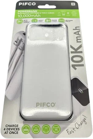 Pifco 71991 Power Bank, Is in good condition. Comes with a Type C and a Lightening cable attached. Has a display screen to state the battery percentage.