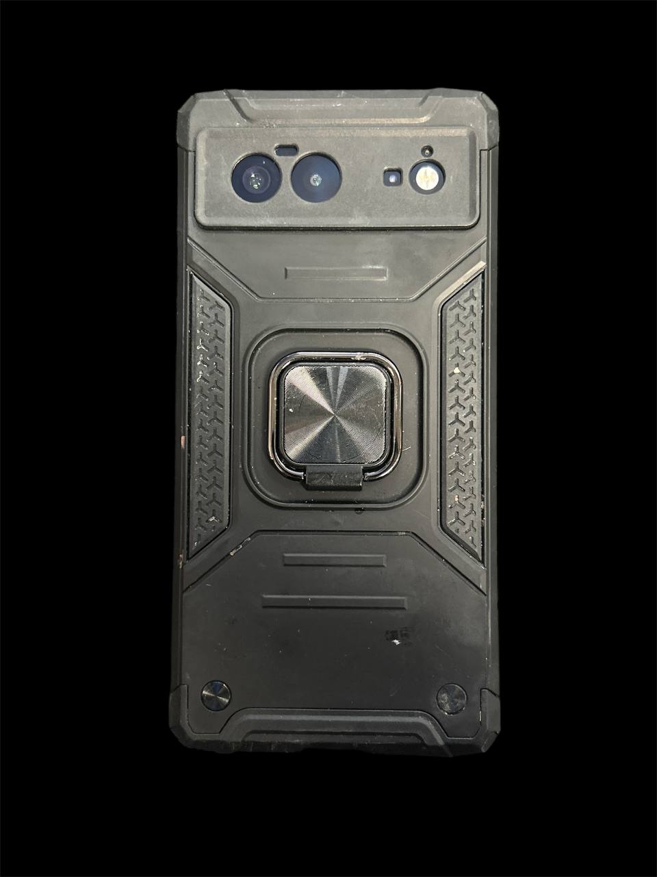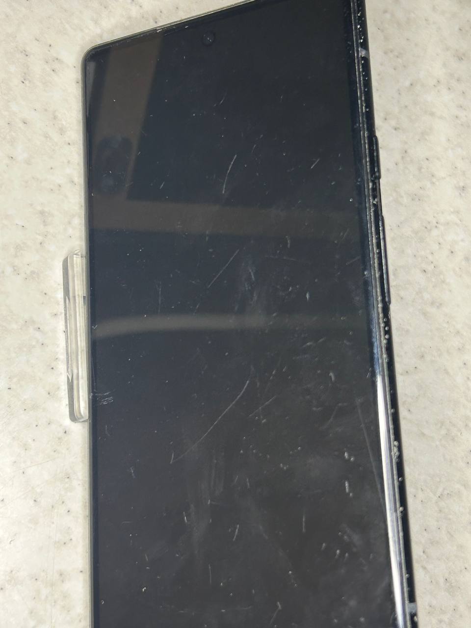 quite a lot of scratches on the screen face and heavy discolouration on the back
