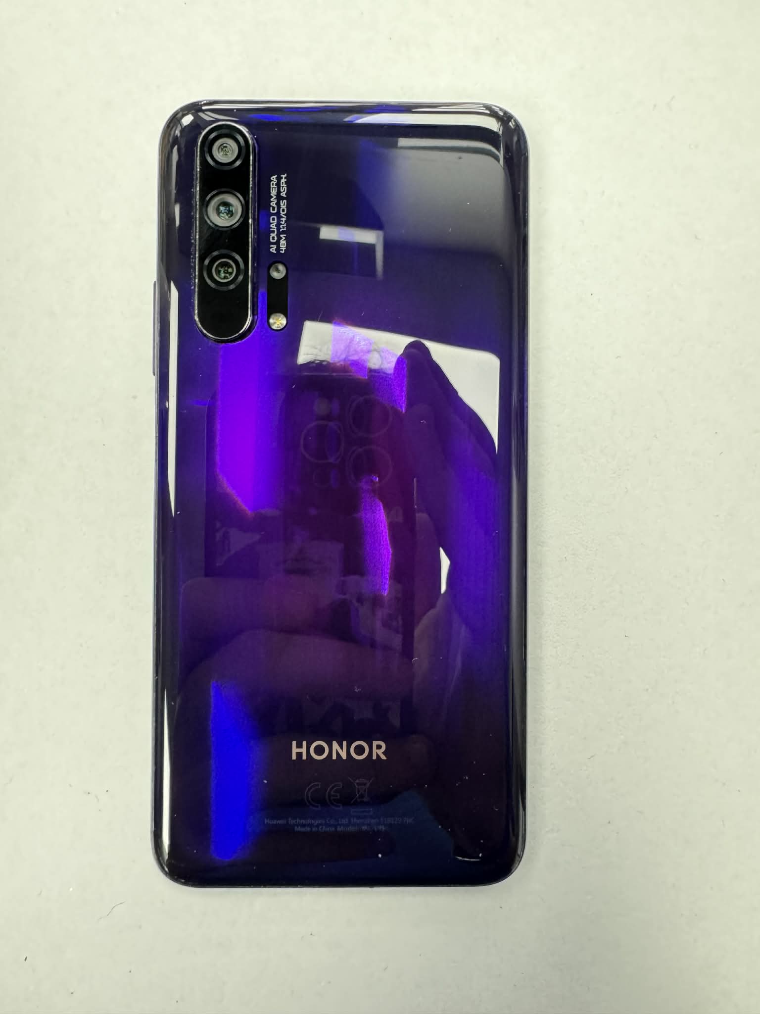 Camera prodigy: the refurbed Honor 20 Pro will win you over with its quad camera and an extra small (but high-resolution) front camera. The incredibly bright (f/1.4) 48.0 MP main camera can take amazing photos deep into the night. The telephoto lens, the wide-angle lens and the macro function always offer the right lens for special moments. Powerhouse The HiSilicon Kirin 980 is a powerhouse with its 8 GB of RAM and 256 GB main memory – the 6.26” display can easily handle demanding games, multiple apps and much more. **Delivery or collection from our Bearwood store**