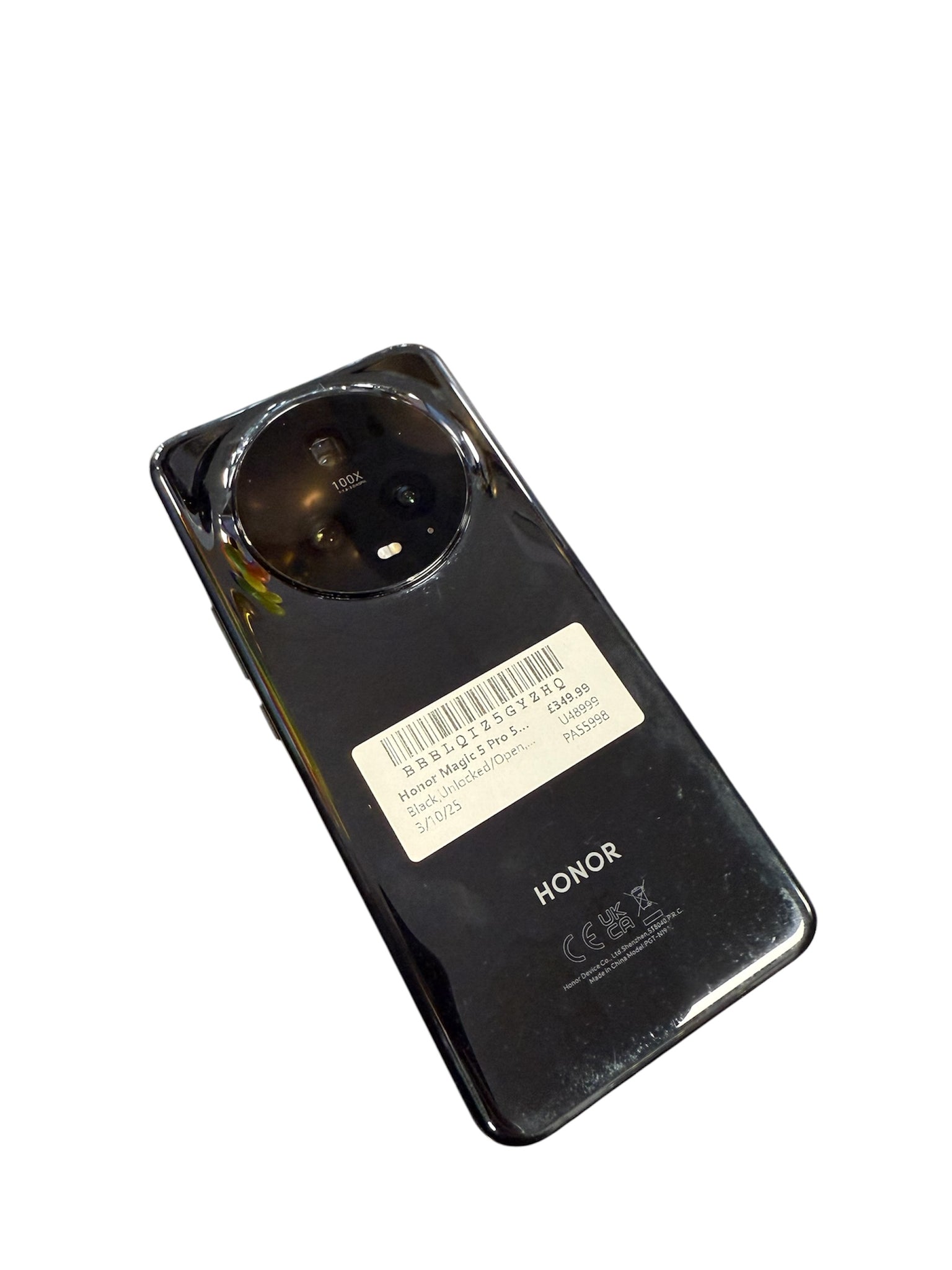 The Honor Magic5 Pro offers an incredible flagship experience for hand and eyes. The quad-curved screen ensures that the phone fits comfortably in the hand with its unique texture. The bright 1800 nits display provides an immersive visual experience. The ultra-dynamic True Color display offers vivid on-screen content and unforgettable moments. Smart features such as 2160 Hz high-frequency PWM dimming, dynamic display dimming and circadian night mode ensure that the display is easy on your eyes and relaxing in any light. Thanks to the IP685 water and dust resistance, your device is also well protected on the go, making it your ideal companion in all situations. The Honor Magic5 Pro is equipped with a powerful camera system. The triple main camera consists of a 50 MP wide-angle camera (f/1.6 aperture), a 50 MP ultra-wide-angle camera (f/2.0 aperture, 122?? FOV)1 and a 50 MP periscope telephoto camera (f/3.0 aperture) with 3.5x optical zoom. The 8-lens wide-angle camera with f/1.6 aperture, anti-glare coating provides dutifully enhanced clarity of shots. The Snapdragon 8 Gen 2 processor and Honor's three optimisation engines drive the flagship SoC to peak performance for flawless operation. The standalone display chipset enables smooth and stable display performance, displaying details comprehensively and vividly. Furthermore, the standalone security chip provides more comprehensive protection by combining two TEE security systems.