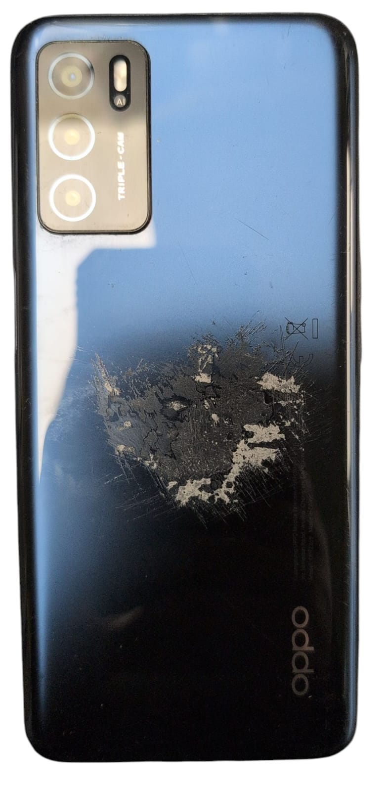 Oppo A16 32GB Blue Unlocked comes unboxed has damage to the back of the phone, deep scratching and a mark in the center. Front screen has deep scratching and marks, used. Collection and delivery available.