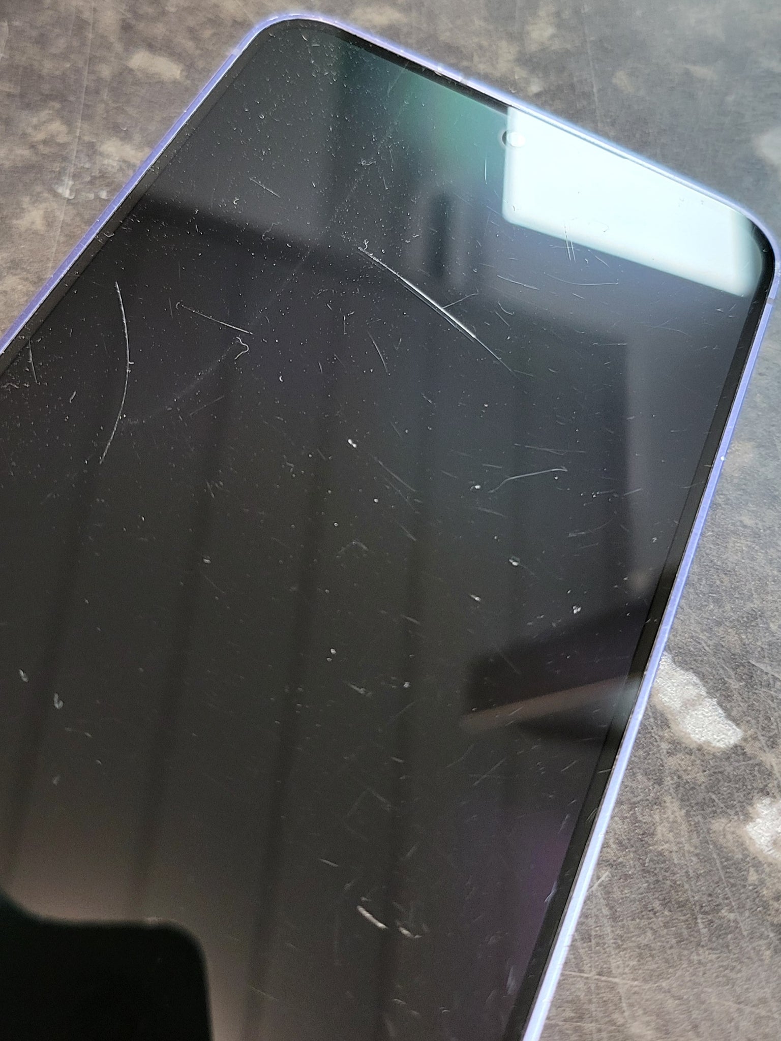 The phone comes unboxed and has scratches and marks from use which do not affect the performance. Tested in store..