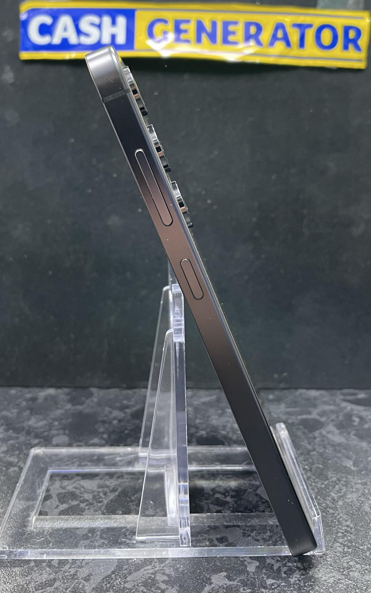 - Buttons: Power button, Volume buttons