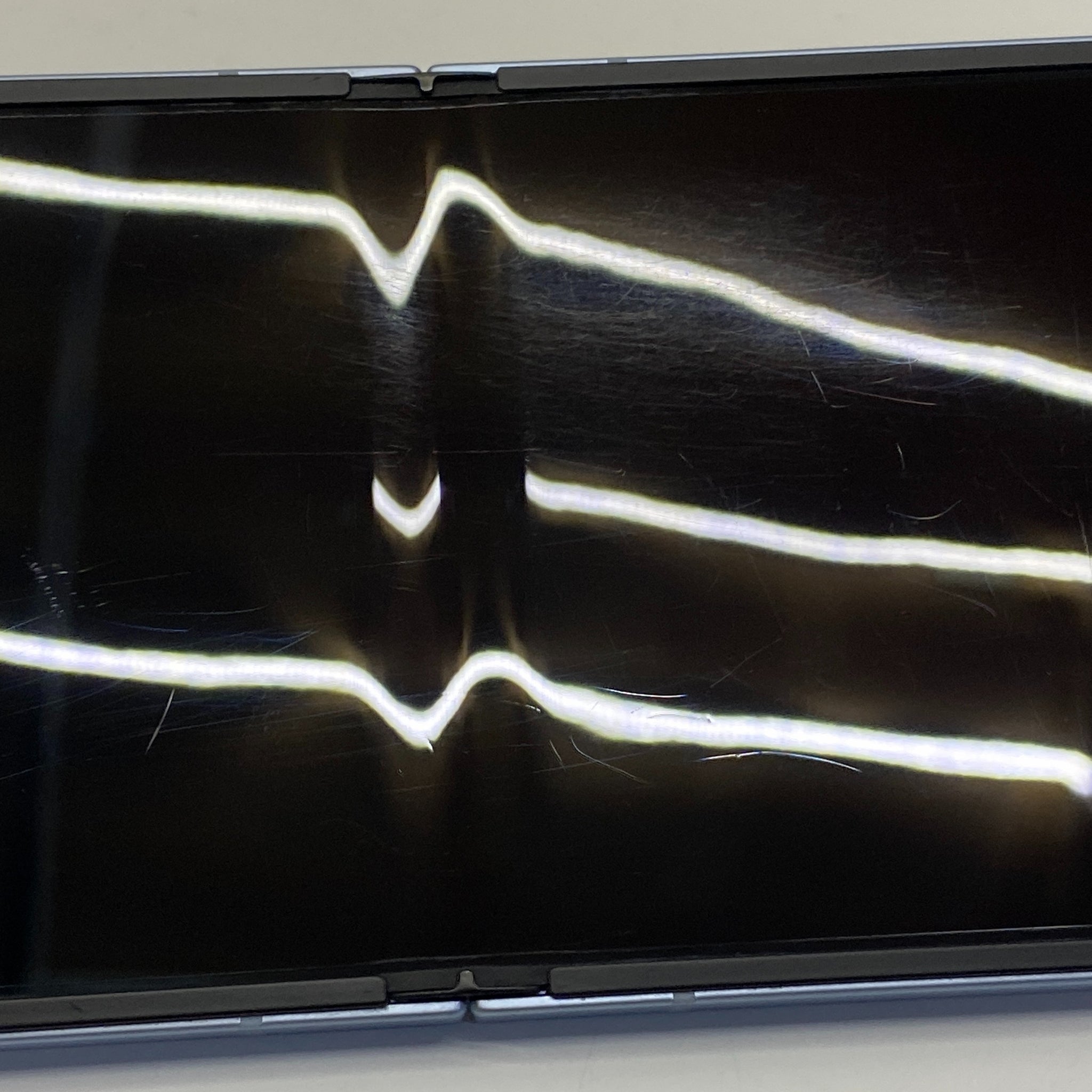 Back screen has some very small light marks which are more noticeable under light