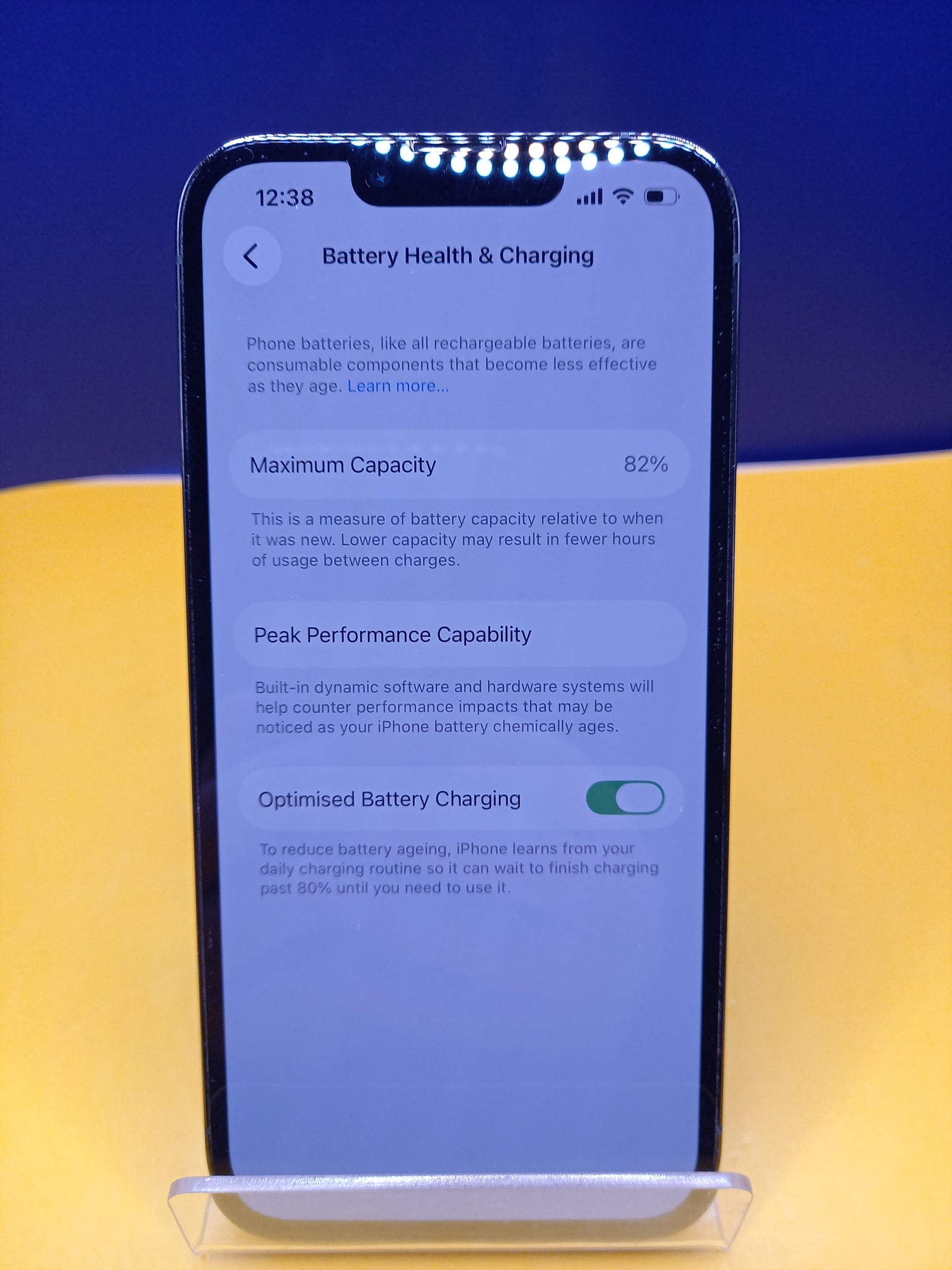 Phone in good full working order, battery health is 82%, no visible scratches on screen, some small marks around edges, comes unboxed but will be packaged well for safe delivery