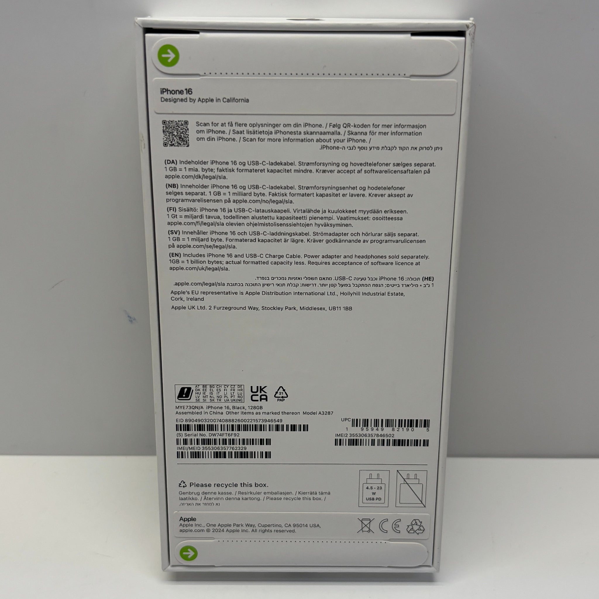 Apple iPhone 16 Unlocked Model A3287 128GB in Black Sealed