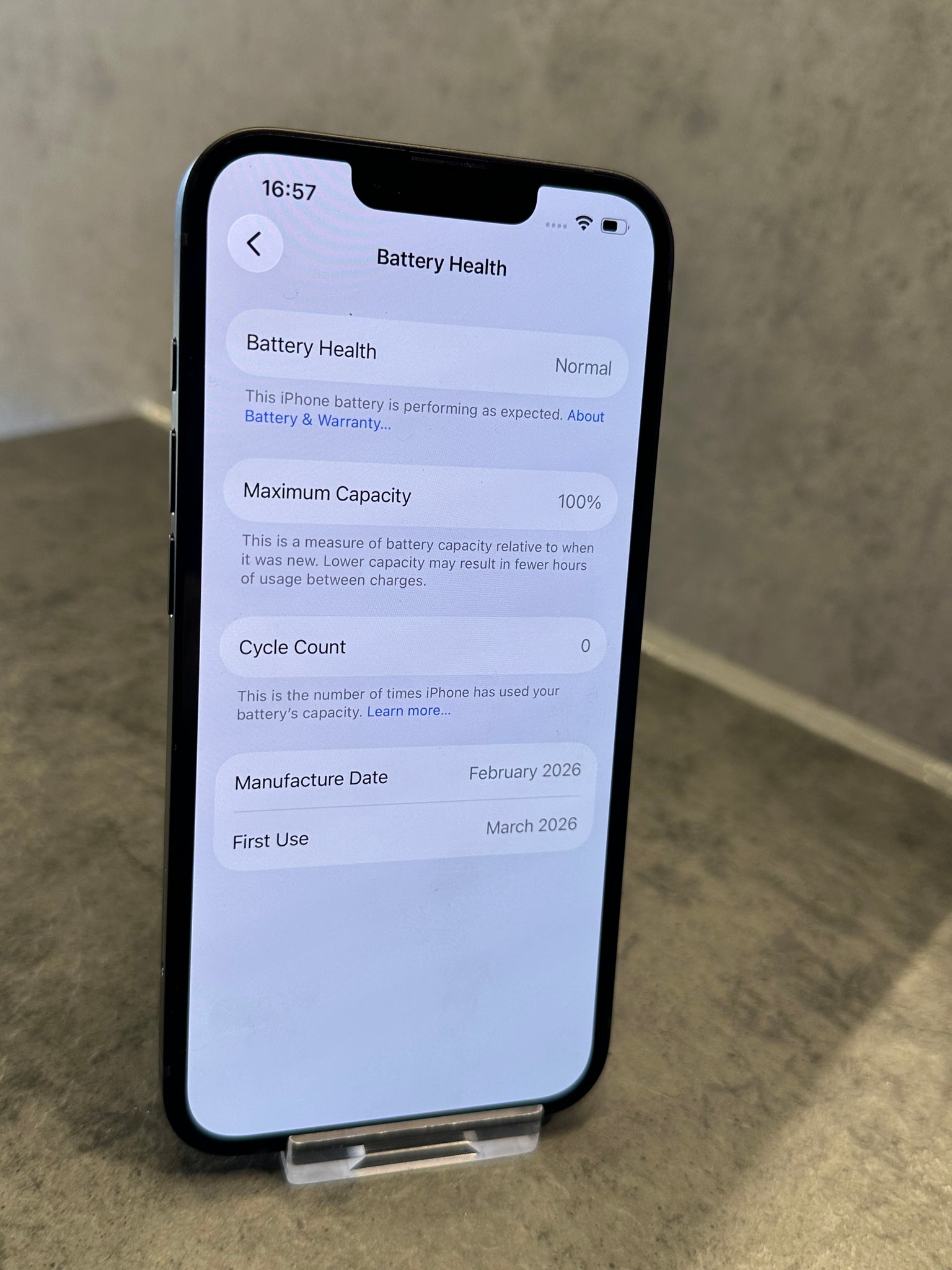 Battery Health 100% - 0 Cycle Count