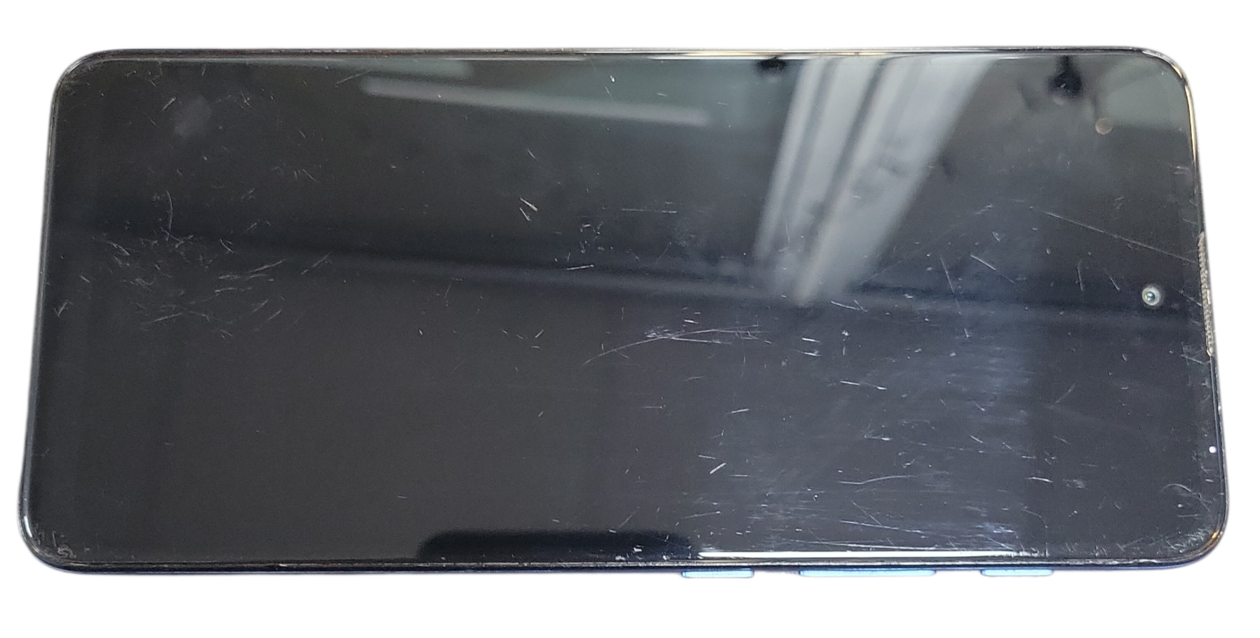 Comes unboxed with charging lead. In used condition has some scratches on screen, Hair line crack on the top camera and some plastic wear in the corners but fully functional.