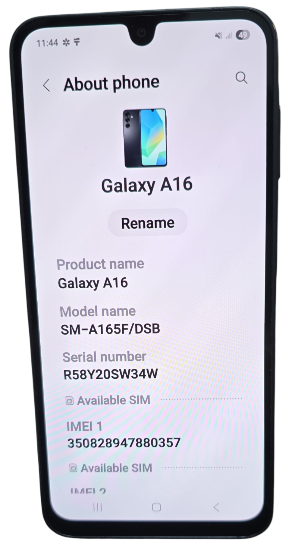The Galaxy A16's 6.7-inch screen provides you with more room for fun. Immerse yourself in your favourite content with the vibrant colours and lifelike details of the FHD+ Super AMOLED display. Capture detailed shots with Galaxy A16's advanced cameras. Use the 50MP Main Camera to snap memories and the 13MP Front Camera to take clear selfies, highlighting key details in your photos. Whether you're gaming heavy or powering through work, the Octa-core processor is capable of keeping your tasks running smoothly. Now, thanks to IP54 protection, you can go about your day with peace of mind. This added durability means it can handle the little surprises of your day, so you can stay focused on what's important. Offered with up to 6 generations of OS upgrades and 6 years of security maintenance, your Galaxy A16 stays up-to-date for longer. Enjoy what you love without worrying about battery life - the 5,000mAh battery keeps Galaxy A16 running strong on a single charge. And with Super Fast Charging, it's back in action quickly.