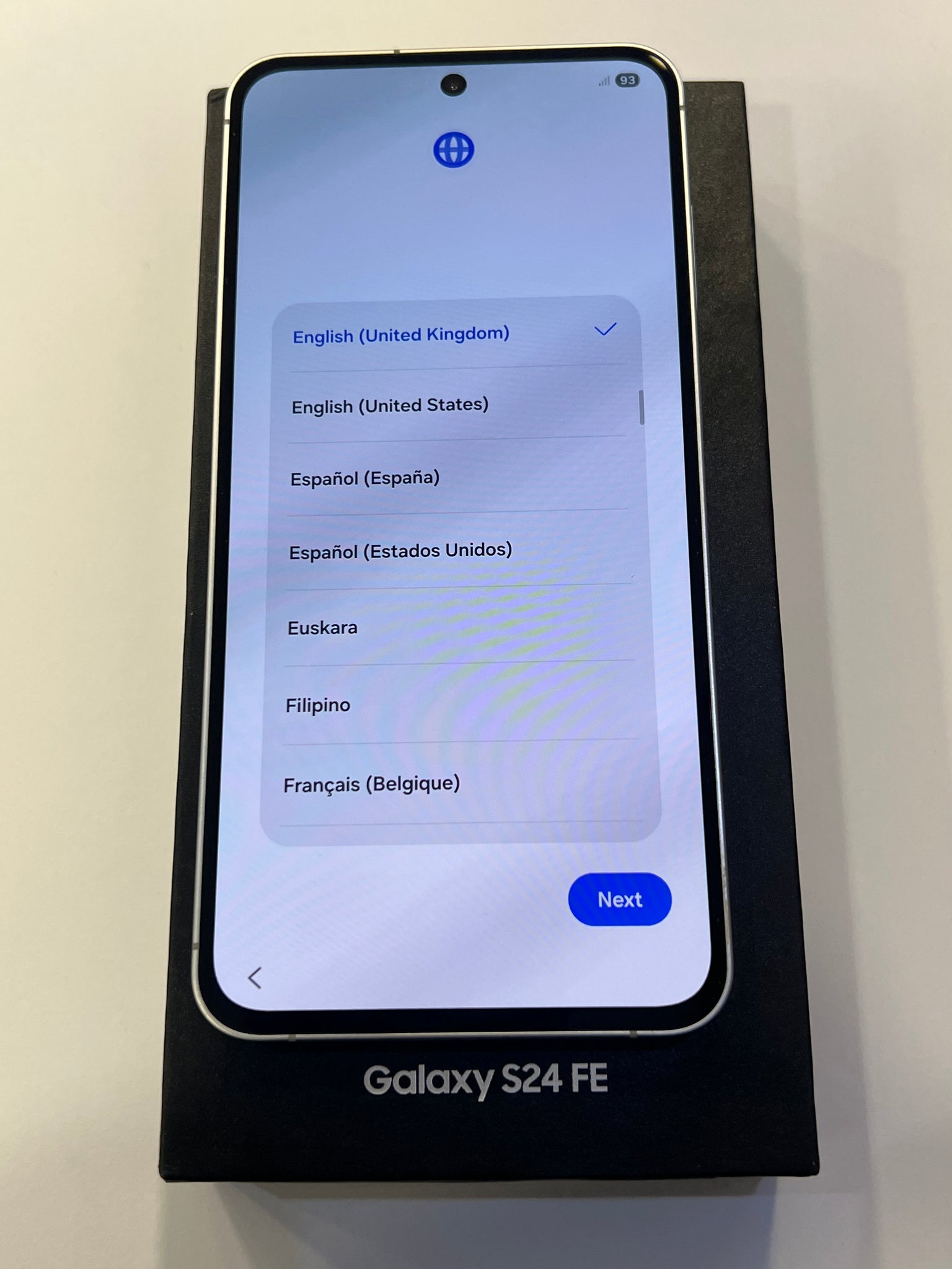 The Galaxy S24 FE delivers premium Galaxy features at great value: it packs a 6.7-inch Dynamic AMOLED 2X display with 120Hz adaptive refresh rate and Vision Booster for vivid visibility. Inside, the Exynos 2400e chipset gives strong performance, while the 4,700 mAh battery provides long-lasting use. Capture moments with a powerful triple-camera setup (50 MP main, 12 MP ultra-wide, 8 MP 3× telephoto) enhanced by AI-powered ProVisual Engine. It’s built tough with Gorilla Glass Victus+ and an IP68 water/dust rating, runs Android 14 with One UI 6.1, and comes with 7 years of security and OS updates. -------------------------------------- •128GB •Unlocked •Android 16 •Boxed without charger