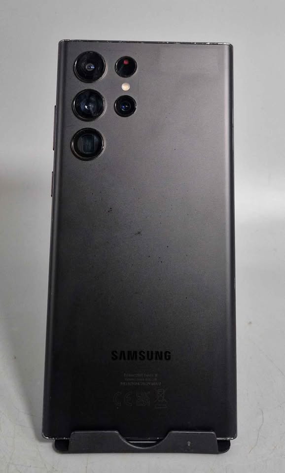 The Samsung Galaxy S22 Ultra 5G in Phantom Black is a high-performance flagship featuring a 6.8-inch Dynamic AMOLED 2X display with a 120Hz refresh rate and a peak brightness of 1750 nits. It is powered by a 4nm processor (either Snapdragon 8 Gen 1 or Exynos 2200 depending on the region) and includes a built-in S Pen for productivity Camera: Quad-rear system featuring a 108MP main lens, 12MP ultra-wide, and dual 10MP telephoto lenses providing up to 100x Space Zoom. Battery: 5000 mAh capacity supporting all-day use and fast charging. Storage/RAM: 128GB internal storage paired with 8GB RAM. Connectivity: Supports 5G, Wi-Fi 6E, and Dual SIM (typically via Nano-SIM and eSIM