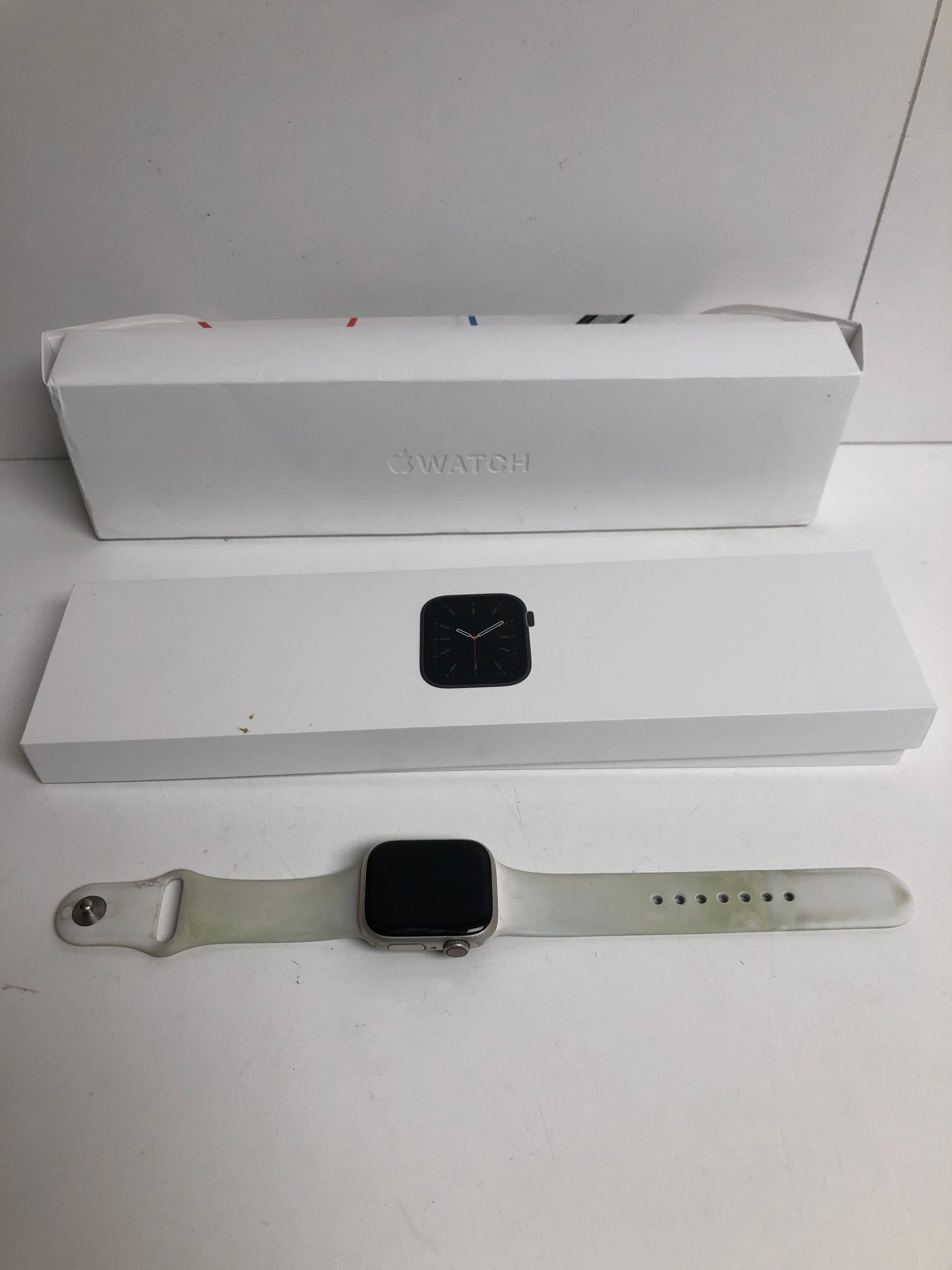Apple Watch Series 6 lets you measure your blood oxygen level with a revolutionary new sensor and app.Take an ECG from your wrist. See your fitness metrics on the enhanced Always-On Retina display, now 2.5x brighter outdoors when your wrist is down. Set a bedtime routine and track your sleep. And with cellular service, you can go without your phone. Its the ultimate device for a healthier, more active, more connected life. boxed, with original charger, has some discolouration on the strap, face is in good condition
