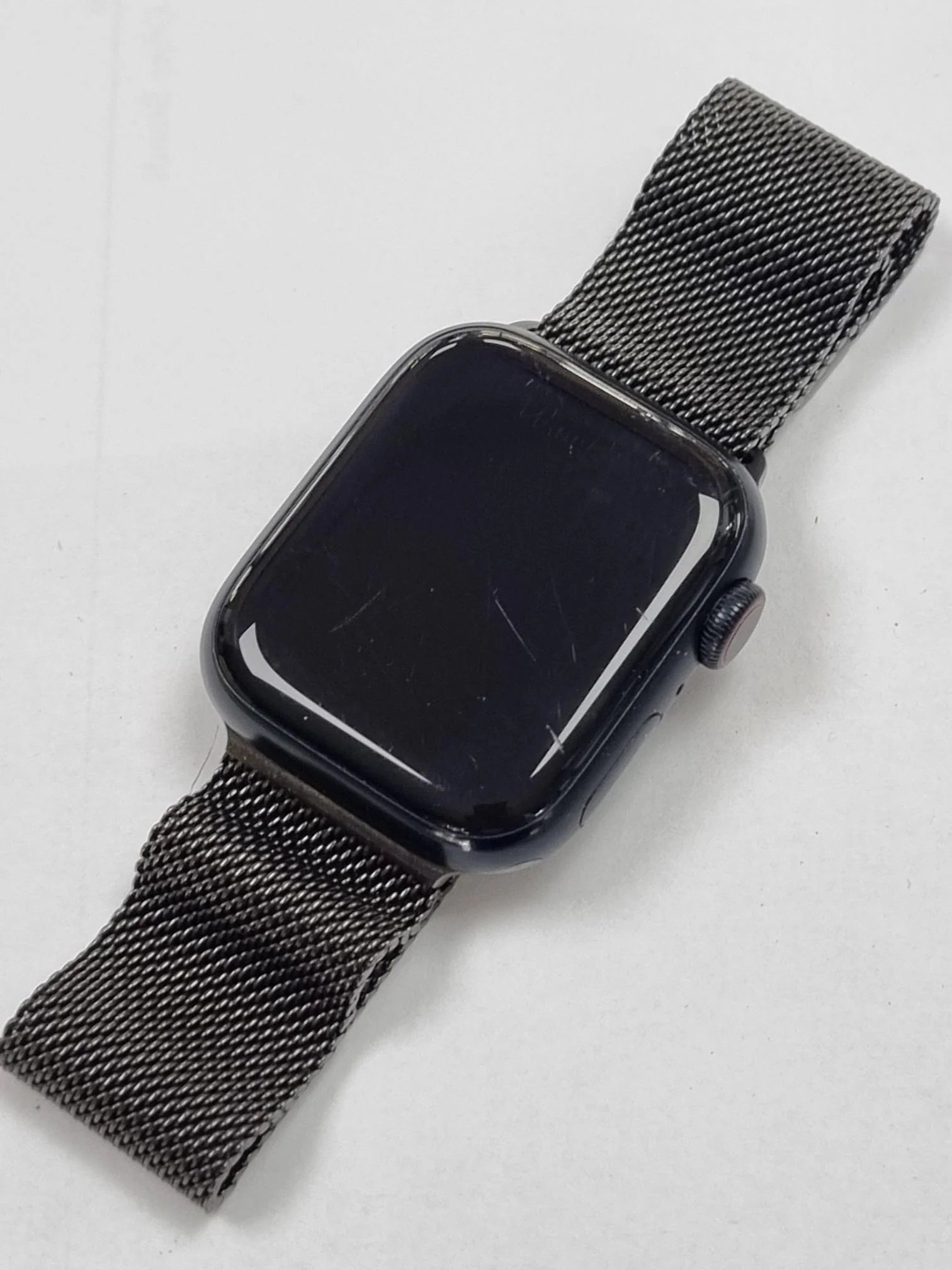 comes with magnetic adjustable strap a couple small scratches to face fully reset with charger Apple Watch Series 9 41mm Cellular Technical Specifications: Display: Retina LTPO OLED display with Force Touch Case Size: 41mm Connectivity: Cellular, Wi-Fi, Bluetooth 5.0 Processor: Apple S9 chip with 64-bit dual-core processor Operating System: watchOS 9 Sensors: Optical heart sensor, electrical heart sensor, blood oxygen sensor, accelerometer, gyroscope, ambient light sensor Water Resistance: Water-resistant up to 50 meters Compatibility: Works seamlessly with iPhone 13, iPhone 12, iPhone 11, and other compatible iOS devices Display Crafted with precision and elegance, the Apple Watch Series 9 41mm Cellular boasts a sleek 41mm case size, perfect for both men and women. The stunning Retina display captivates with its vibrant colours and sharp clarity, ensuring every glance at your wrist is a visual delight. Whether you're indoors or outdoors, the display's brightness adjusts automatically to suit your surroundings, providing optimal visibility at all times. Performance and Connectivity Powered by the latest advancements in technology, the Apple Watch Series 9 delivers exceptional performance that keeps pace with your active lifestyle. Equipped with cellular capabilities, you can stay connected even when you leave your phone behind. Receive calls, texts, and notifications directly on your wrist, and stream music or podcasts effortlessly, no matter where your adventures take you. Health and Fitness Tracking Take charge of your well-being with the comprehensive health and fitness features of the Apple Watch Series 9. From monitoring your heart rate and tracking your workouts to keeping tabs on your sleep patterns, this smartwatch empowers you to make informed decisions about your health. With built-in GPS and an array of fitness apps, including Apple Fitness+, reaching your fitness goals has never been more attainable. Features Experience the convenience of cutting-edge features that redefine what a smartwatch can do. With Siri integration, you can access information and perform tasks with just your voice, making everyday interactions effortless. The Apple Watch Series 9 also offers water resistance, allowing you to take it for a swim without worry. Plus, with a range of available apps from the App Store, the possibilities are endless for customising your watch to suit your unique needs.