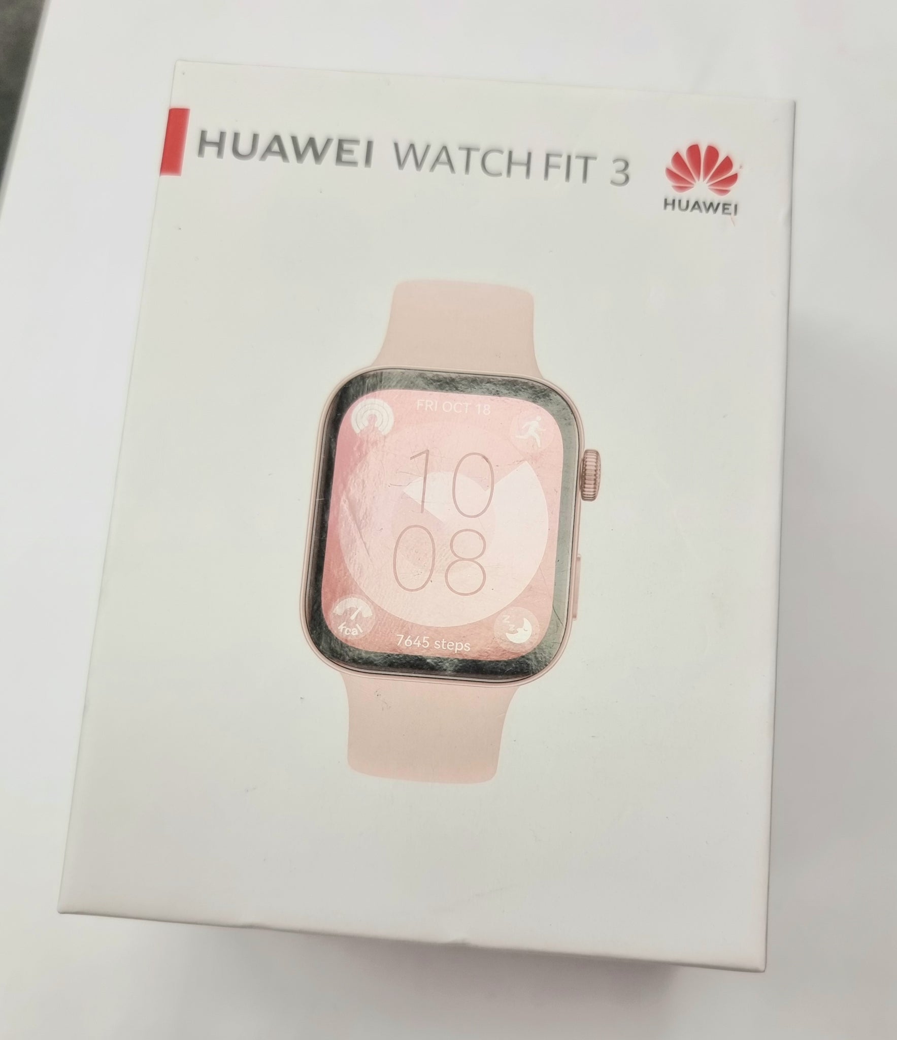 This is sealed in the box. Pink Huawei Watch Fit 3 smart watch.