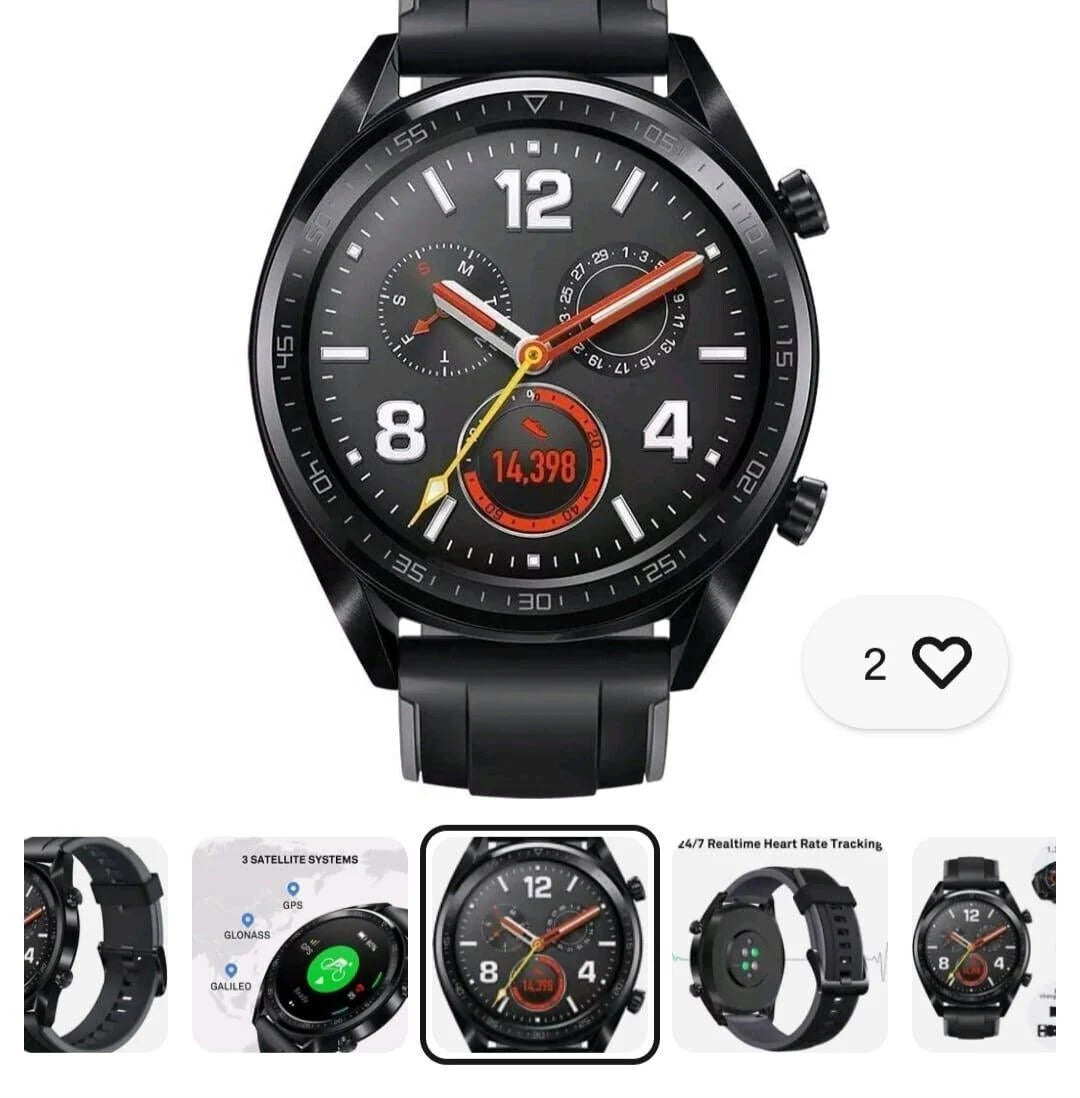 1.39-inch AMOLED display ; 2 week battery life ; Huawei's Lite OS GPS/GLONASS/Galileo ; Altimeter Tracks running, swimming and cycling ; Heart rate monitor Works with iOS and Android Package Content : Watch , Charging Cradle,