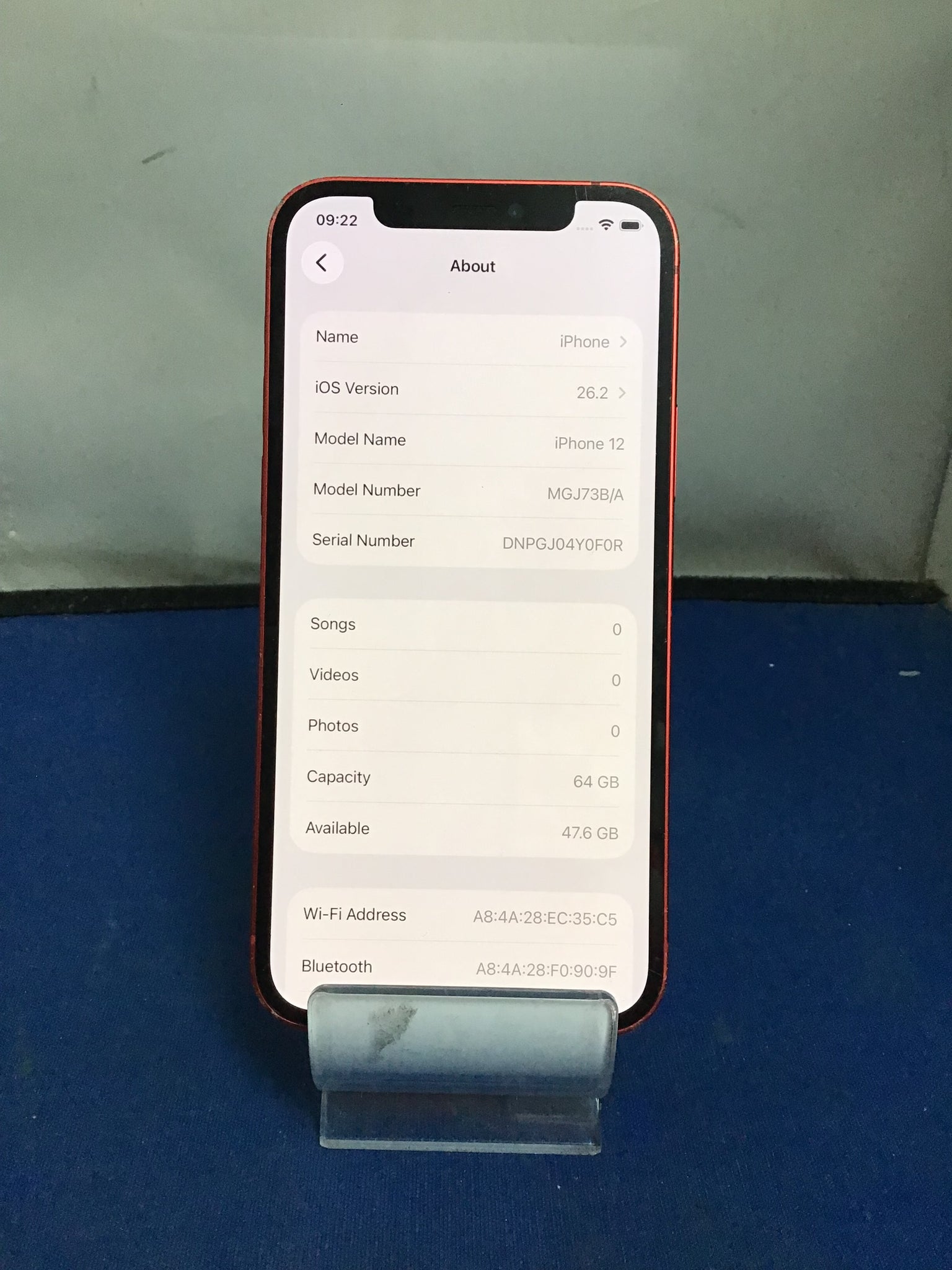Apple iPhone 12 (Product Red) 64GB Storage IOS 26.2 82% Battery Health