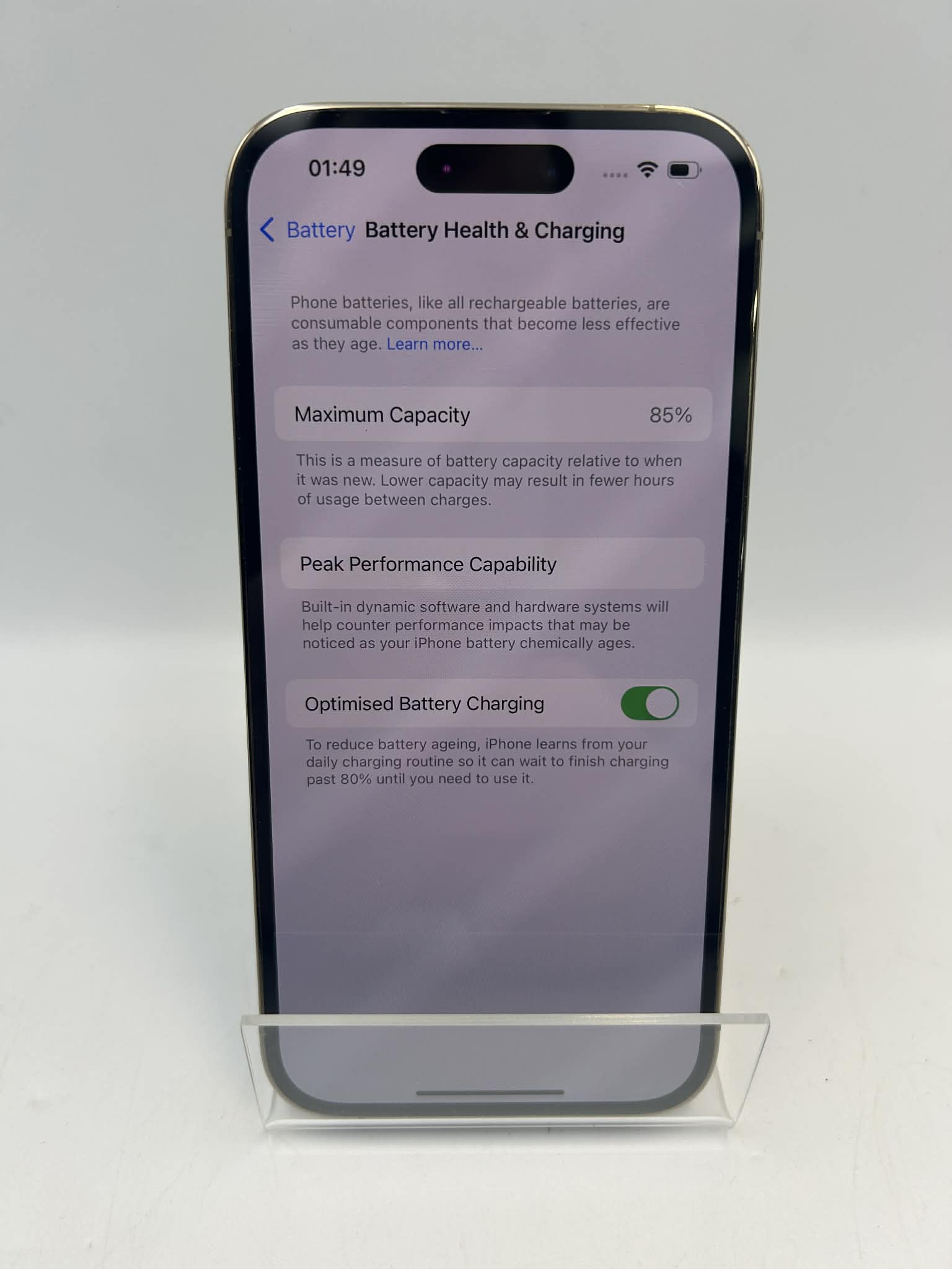 Apple iPhone 14 Pro 128GB Gold, Unlocked, 85% Battery Health